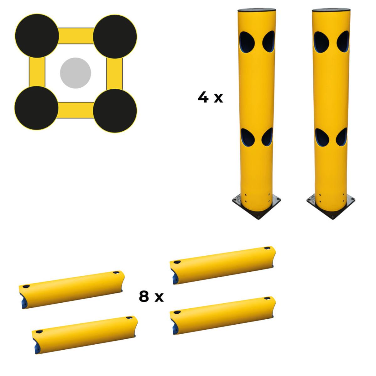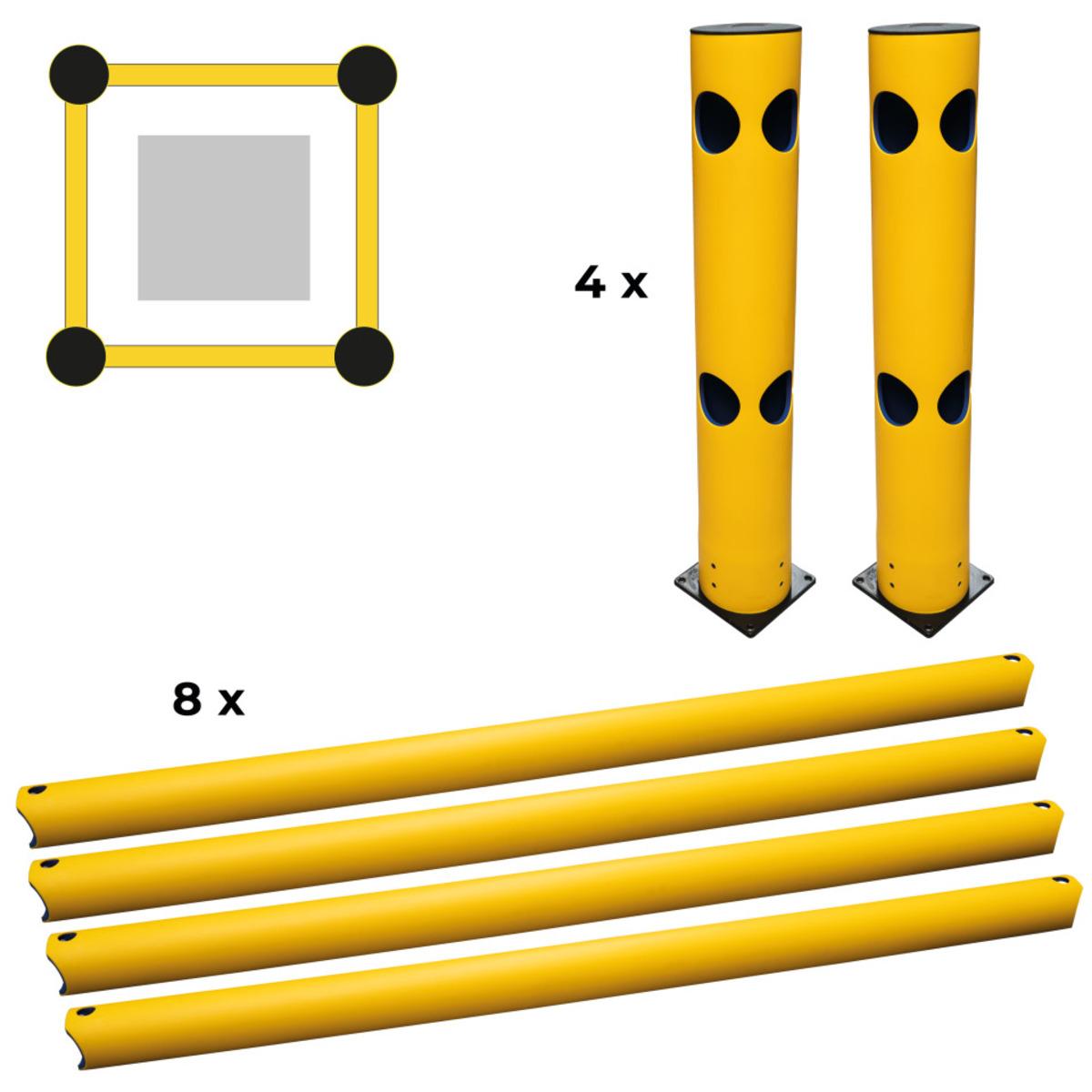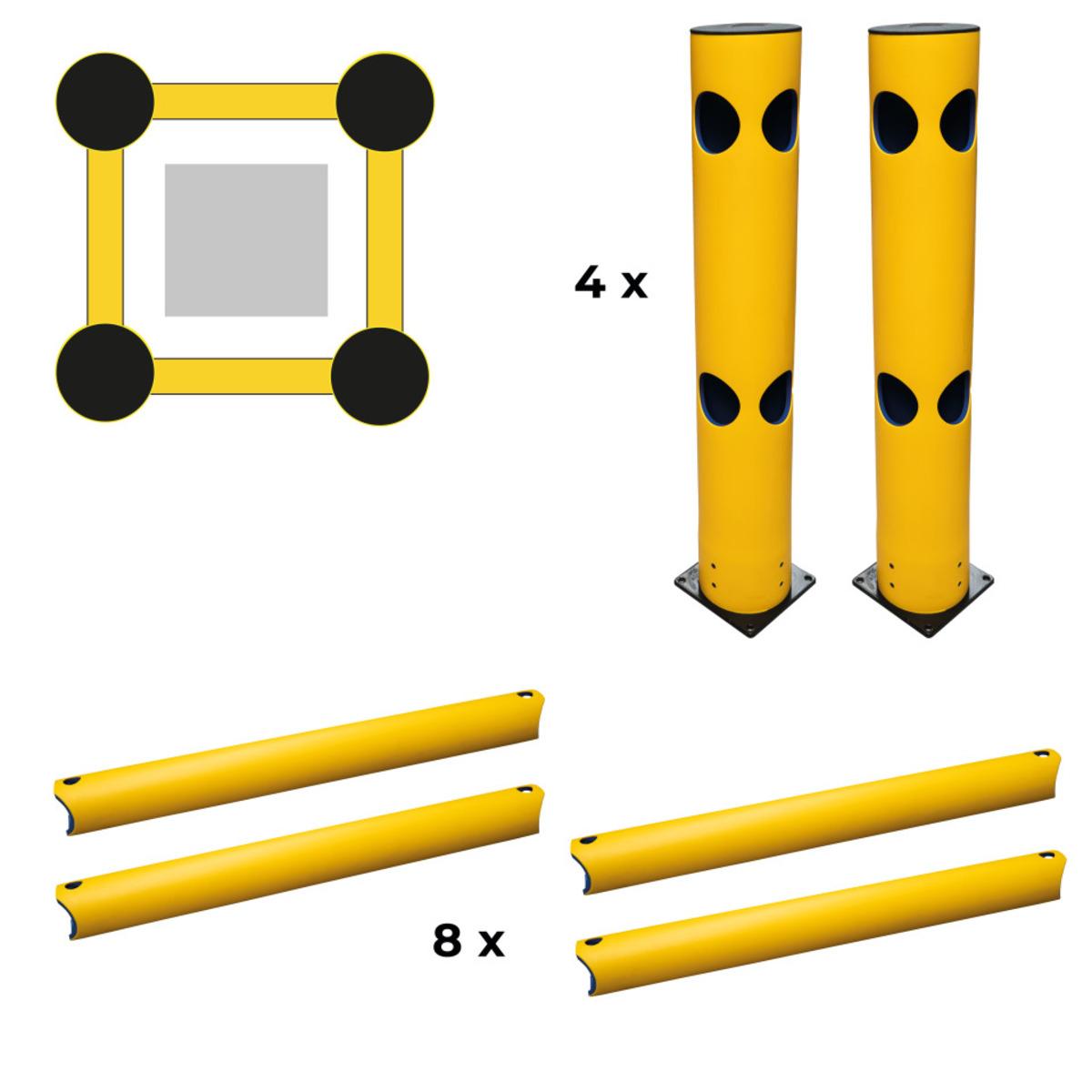 Auswahl: K.57 Säulen-Schutz-Set, 500mm, 4 Eckpfosten, 8 Planken 500mm, Befestigungsmaterial