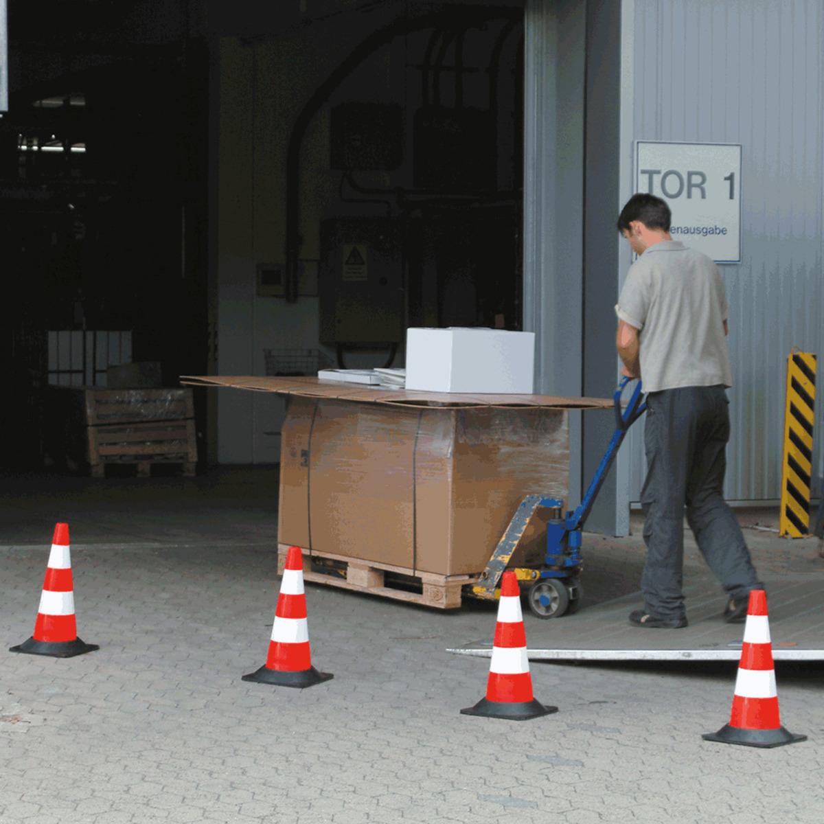 Standfeste Leitkegel für Tages- oder Nachteinsätze.