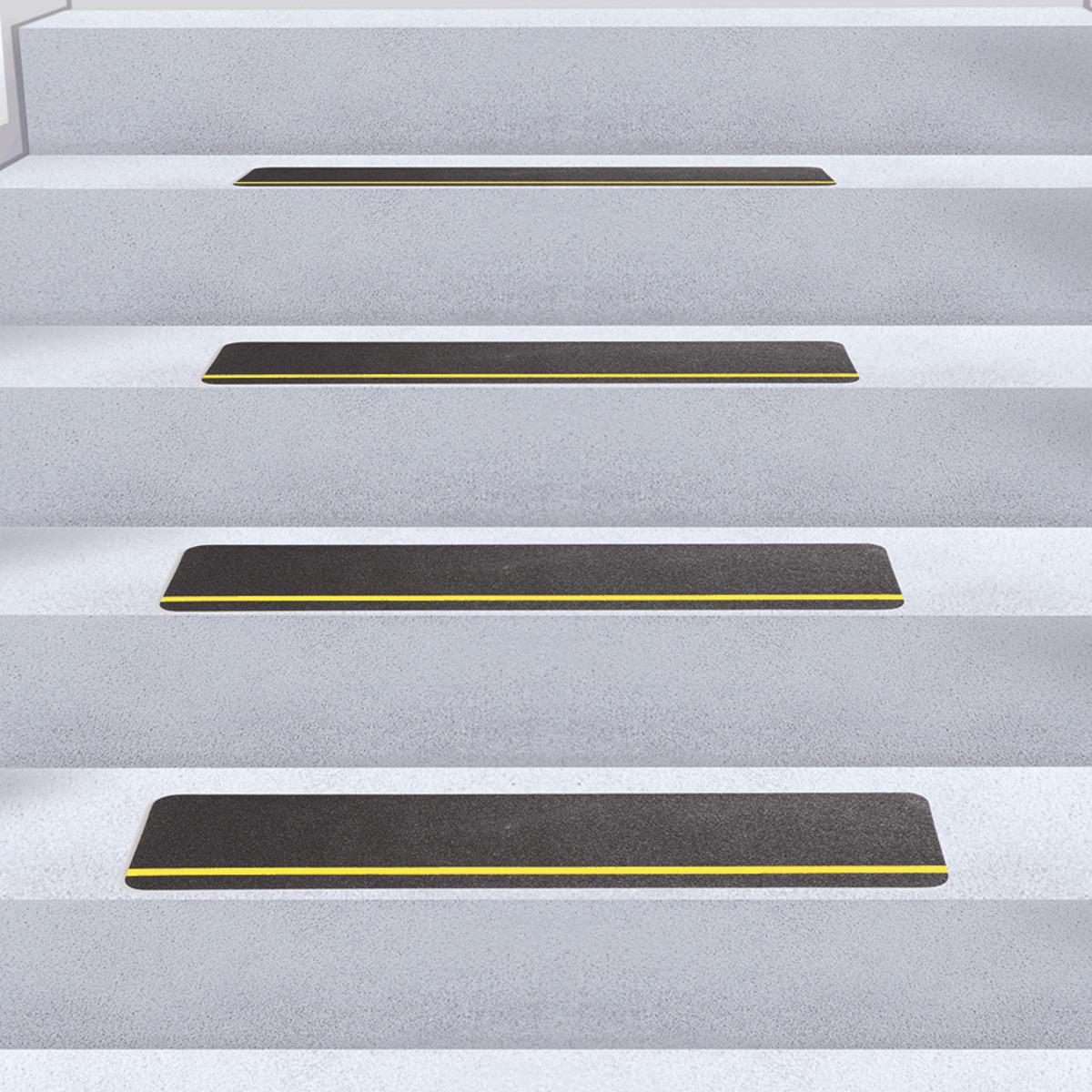Antirutschbelag mit Warnwirkung und Rutschhemmung R13 für glatte, ölige, feuchte oder verschmutze Böden, optimal zum kennzeichnen gefährlicher Stellen, selbstklebend, innen und außen einsetzbar, zugeschnittene Formteile mit abgerundeten Ecken