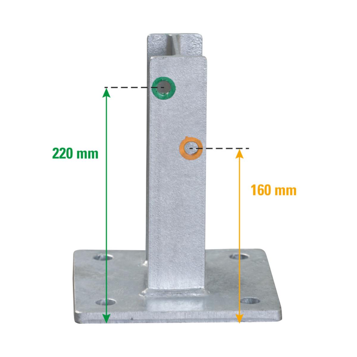 Stahlschutzplanken IPE-Pfosten zum Aufdübeln. Geeignet für Stahlschutzplanke Typ B für den Einsatz auf dem Betriebsgelände. Die Besonderheit der IPE-Pfosten ist der einfache Aufbau mit variabler Montage – die Pfosten sind an gleichfarbigen Bohrlochpunkten miteinander kombinierbar. Ohne Montagewerkzeug und -zubehör.