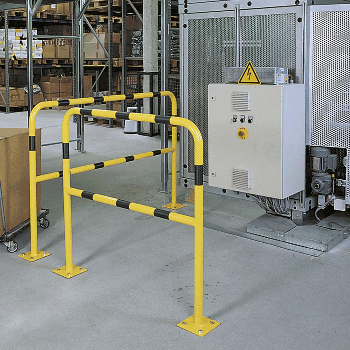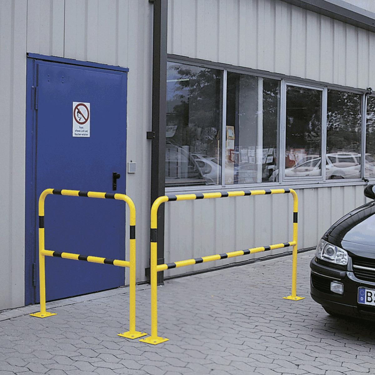 Der gelb-schwarze Schutzbügel light zum Aufdübeln ist ein wirkungsvoller Schutz bei leichtem Transportverkehr. Schutzbügel leiten den Verkehr sicher auf den vorgegebenen Wegen und weisen deutlich auf Gefahrenstellen hin. Zum Aufdübeln der Bodenplatten werden 8 Bolzenanker benötigt.