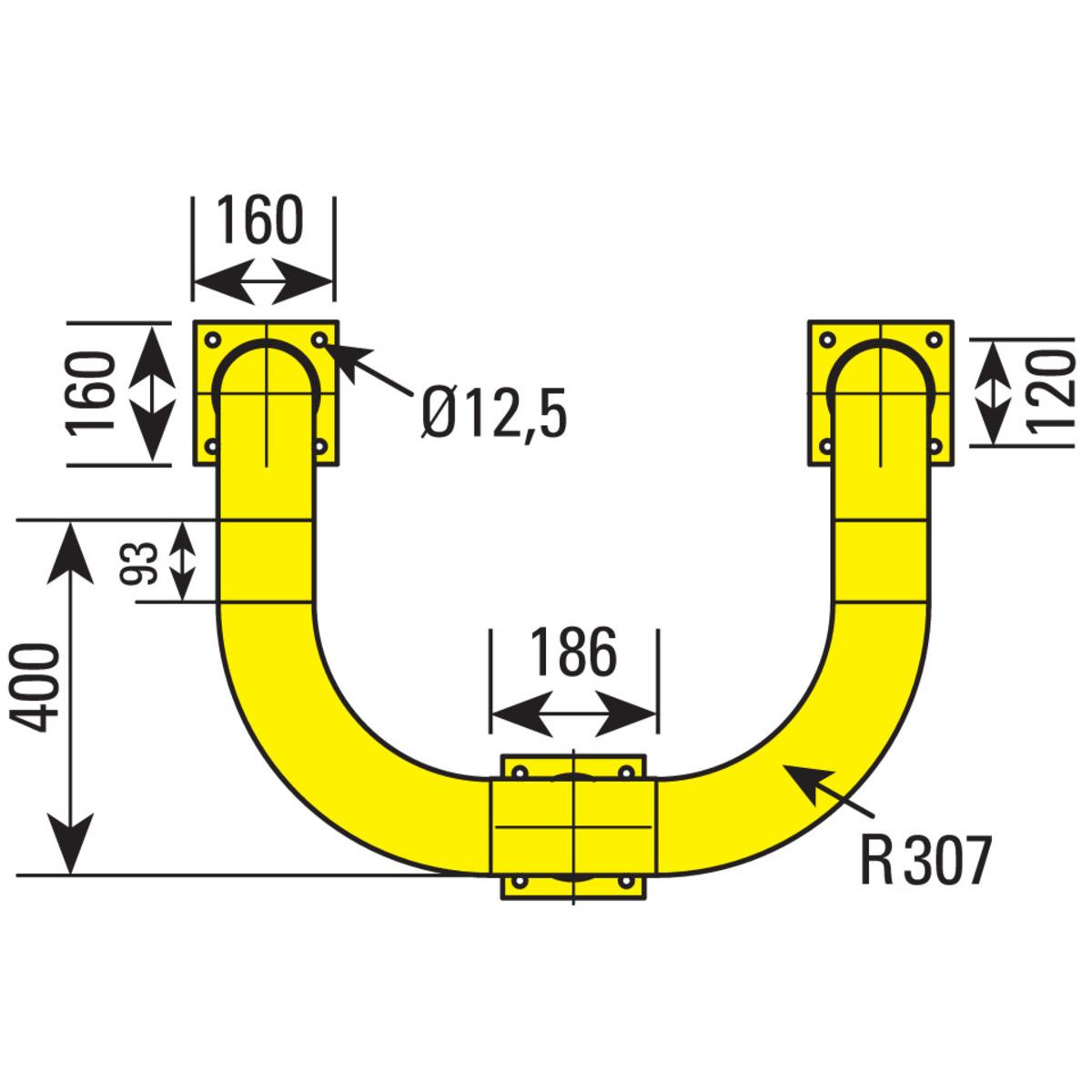 Auswahl: K.57 U-Schutzwinkel, zum Aufdübeln, gelb, Stahl, verzinkt, Ø108mm, 650x800x600mm