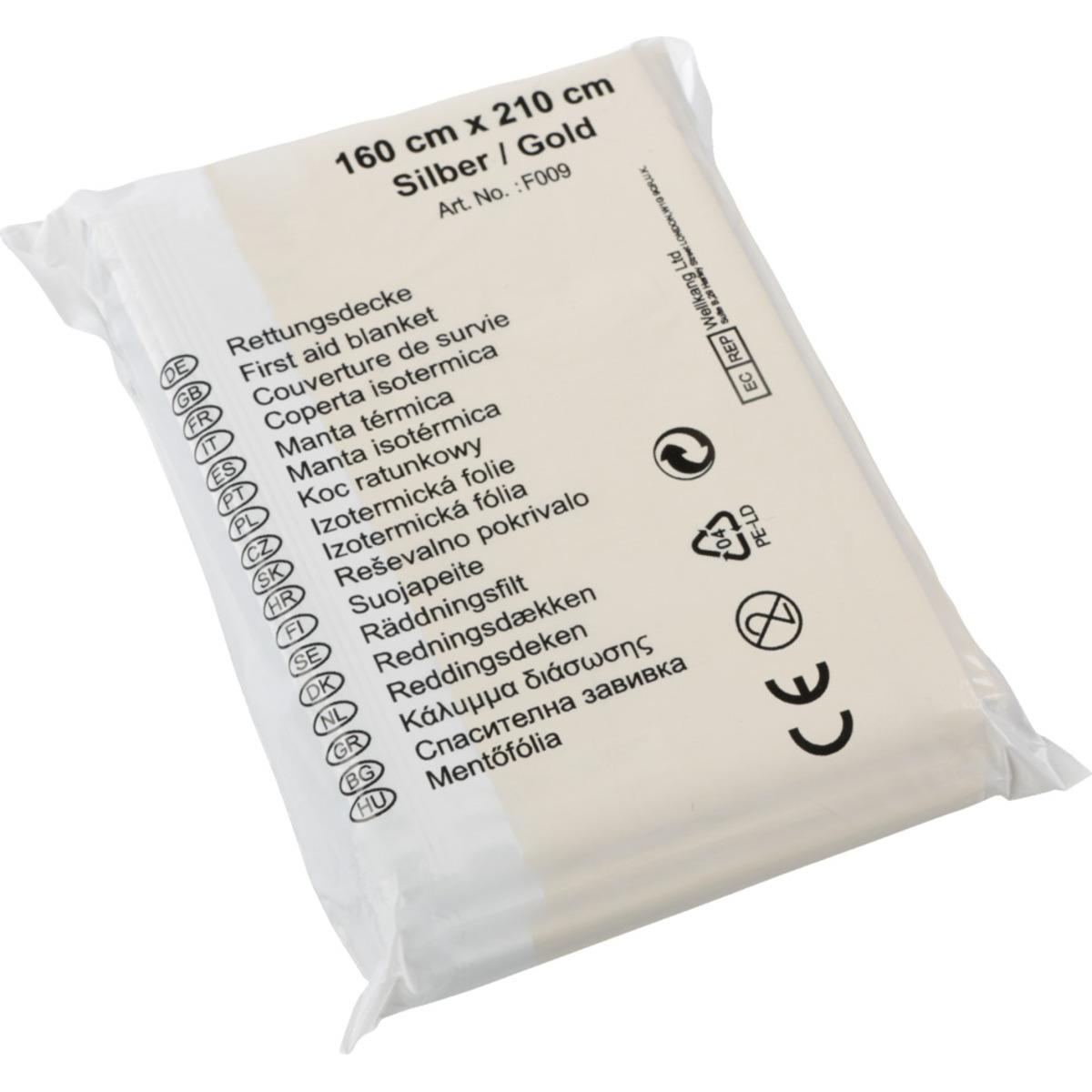 Auswahl: K.57 Rettungsdecke, gold/silber, aluminiumbedampfte Folie, 210x160cm
