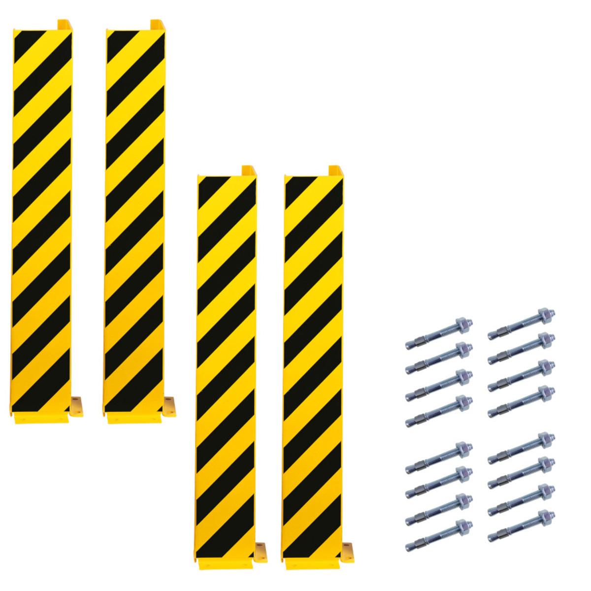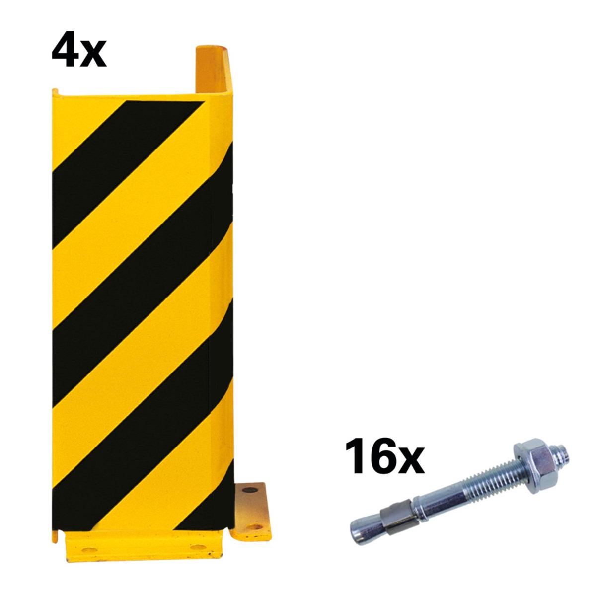 Das Regalschutz Start-Set besteht aus Anfahrschutzwinkeln für äußere Regalecken in L-Form mit gelb/schwarzen Folienzuschnitten zur einfachen Selbstmontage. Pro Winkel 4 Bohrungen, inkl. Befestigungsmaterial.