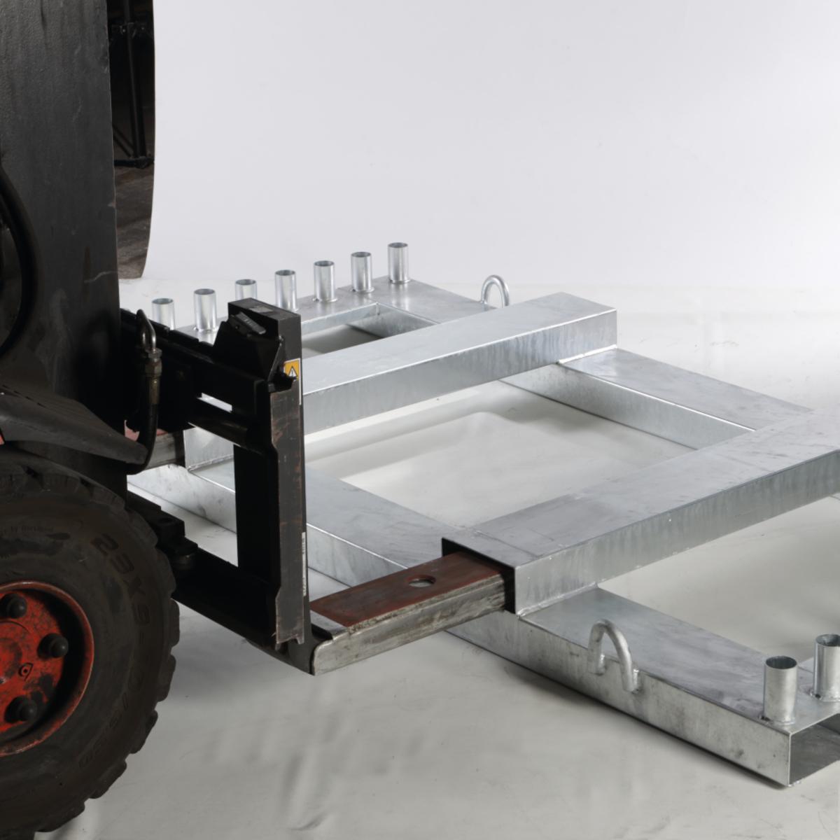Die Transporttraverse ermöglicht den sicheren und flexiblen Transport von Bauelementen wie Schrankenzäunen oder Fußplatten. Dank des zusätzlich mitgelieferten Aufsatzes ist sie sofort einsatzbereit und ideal für die Beförderung per Stapler geeignet.