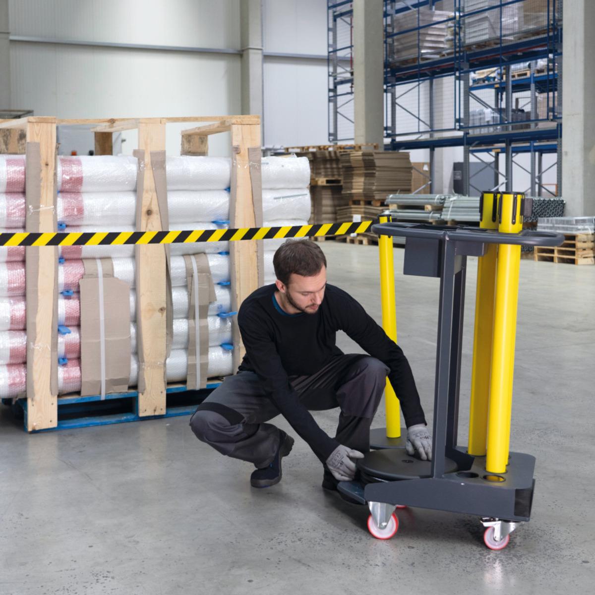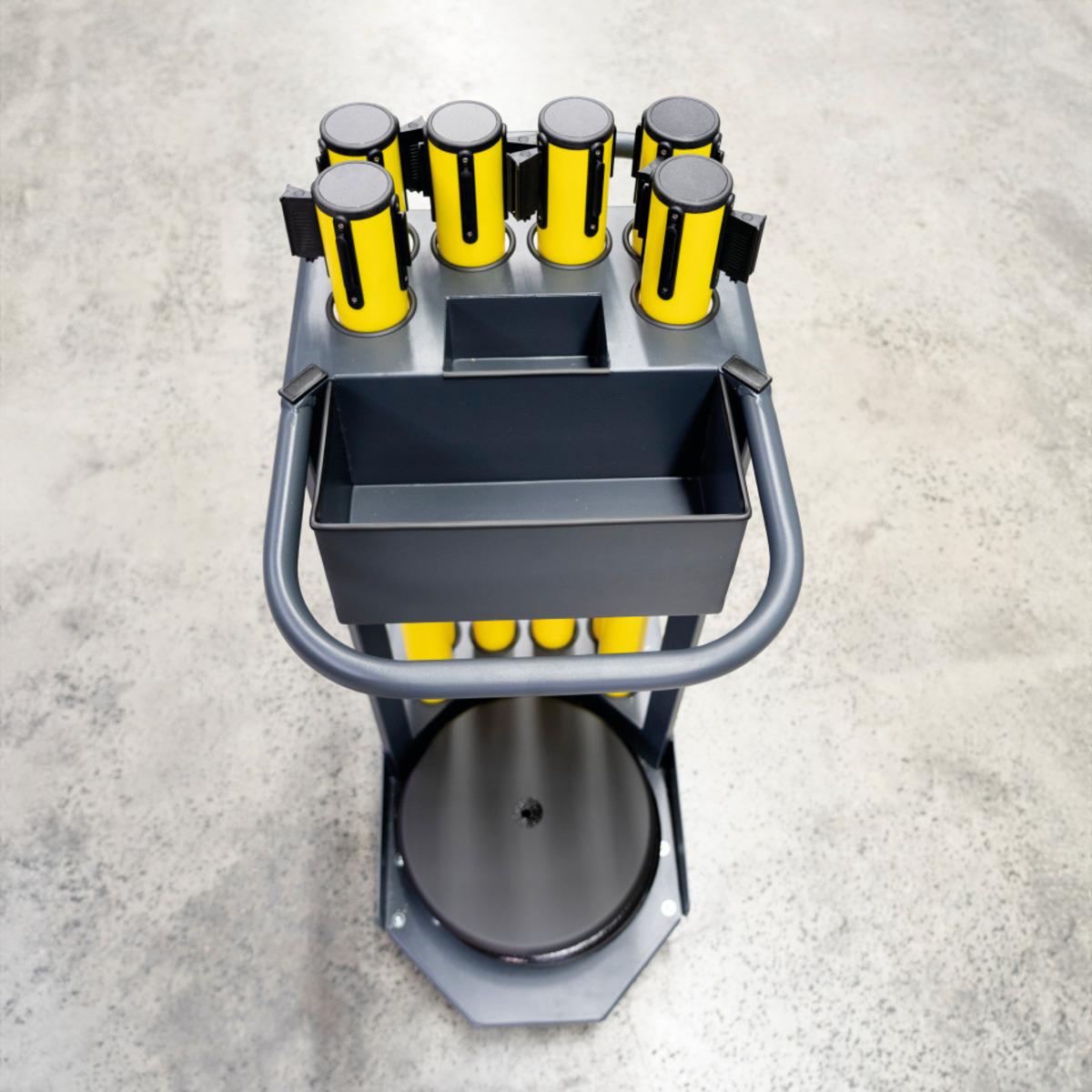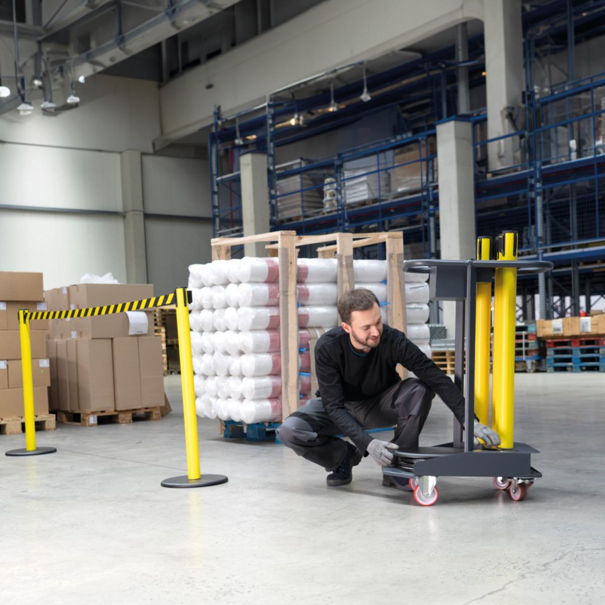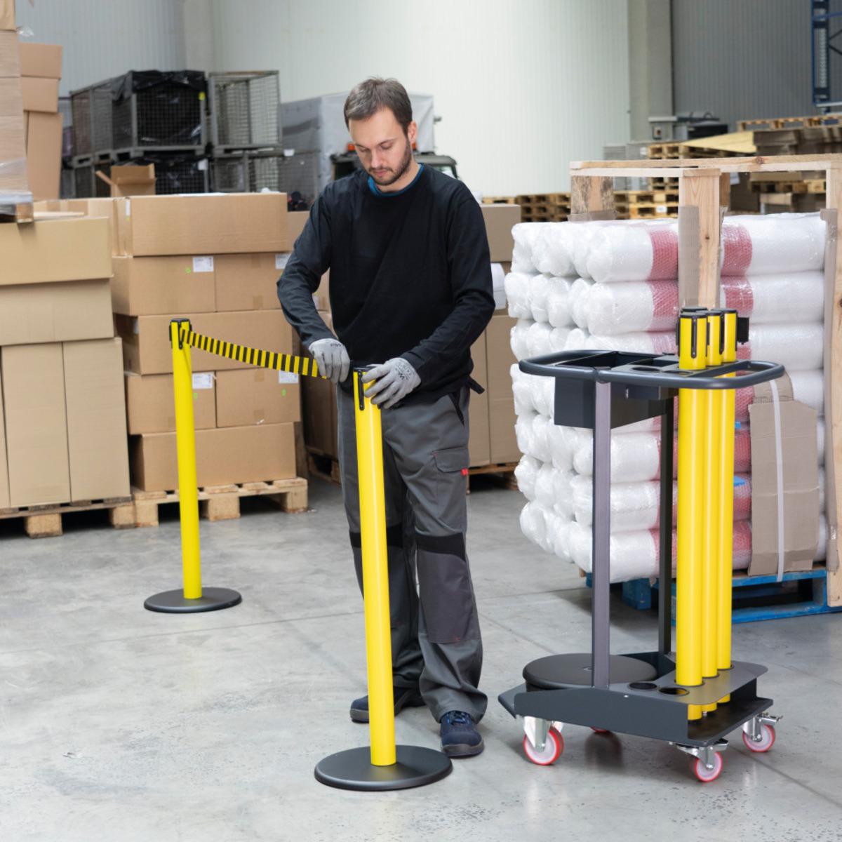K.57 Transportwagen-Set mit Gurtpfosten aus Kunststoff beinhaltet K.57 Gurtpfosten und den Kettenpfosten-Wagen Caddie für den leichten Transport.