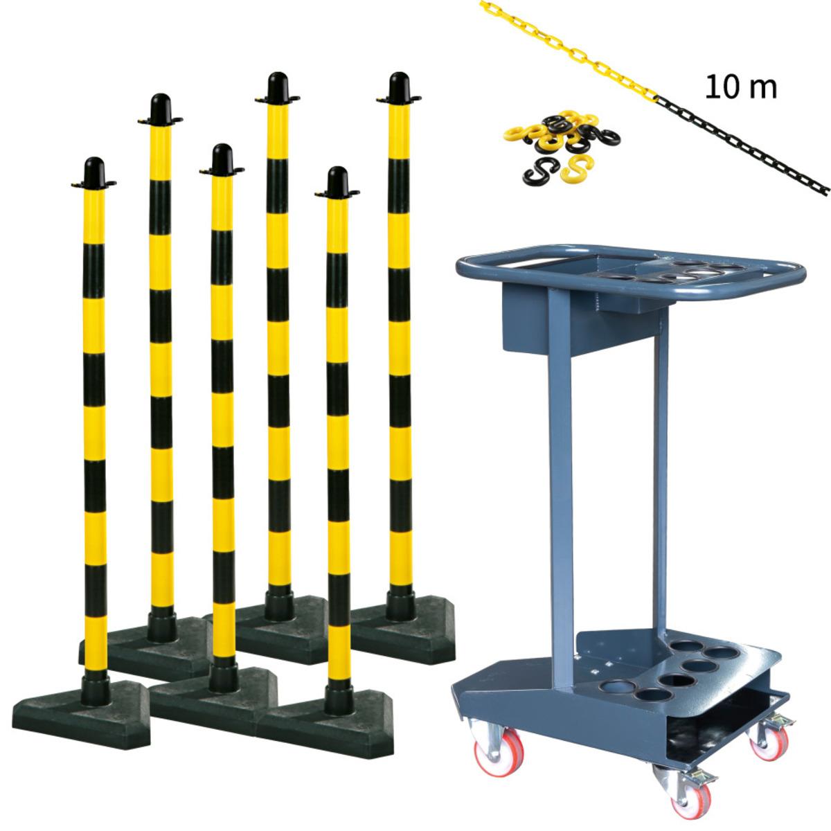 K.57 Transportwagen-Set mit Maxi, Standfuß betongefüllt beinhaltet den Kettenpfosten-Wagen Caddie, K.57 Einzelkettenständer Maxi mit betongefüllten Standfüßen.