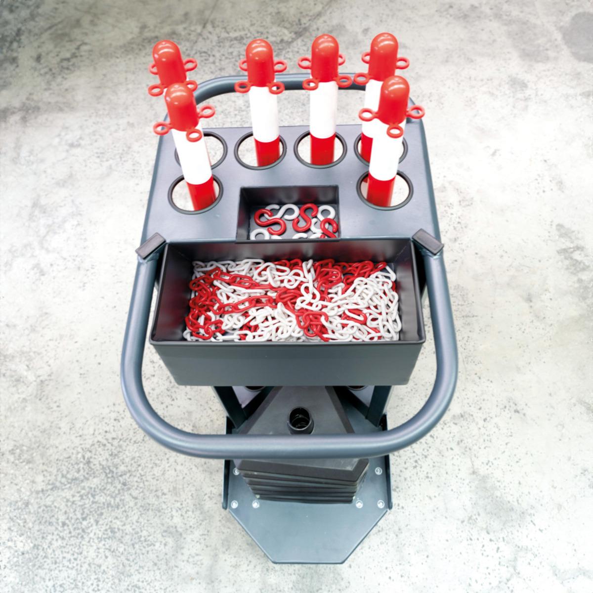 Auswahl: K.57 Transportwagen-Set, Kettenständer Intern Maxi, S-Haken, Kette, rot/weiß, Caddie
