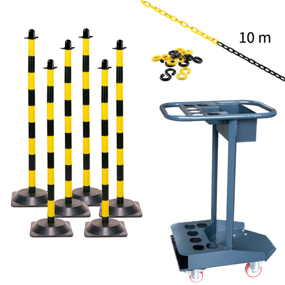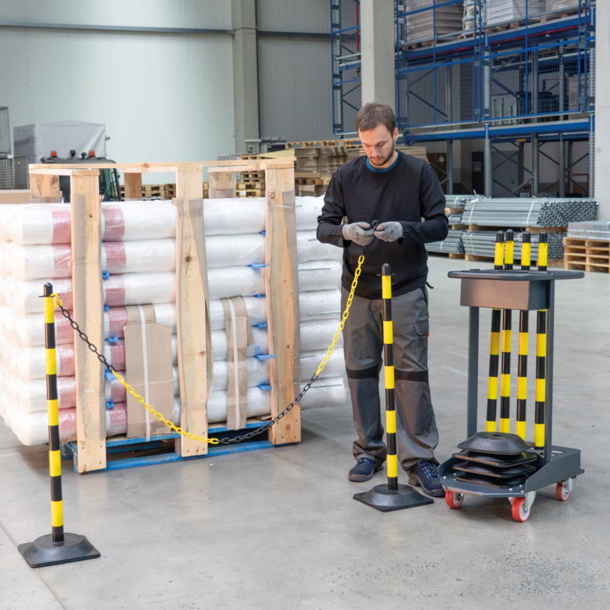Auswahl: K.57 Transportw.-Set, Kettenständer Mobil Maxi, S-Haken, Kette, gelb/schwarz, Caddie