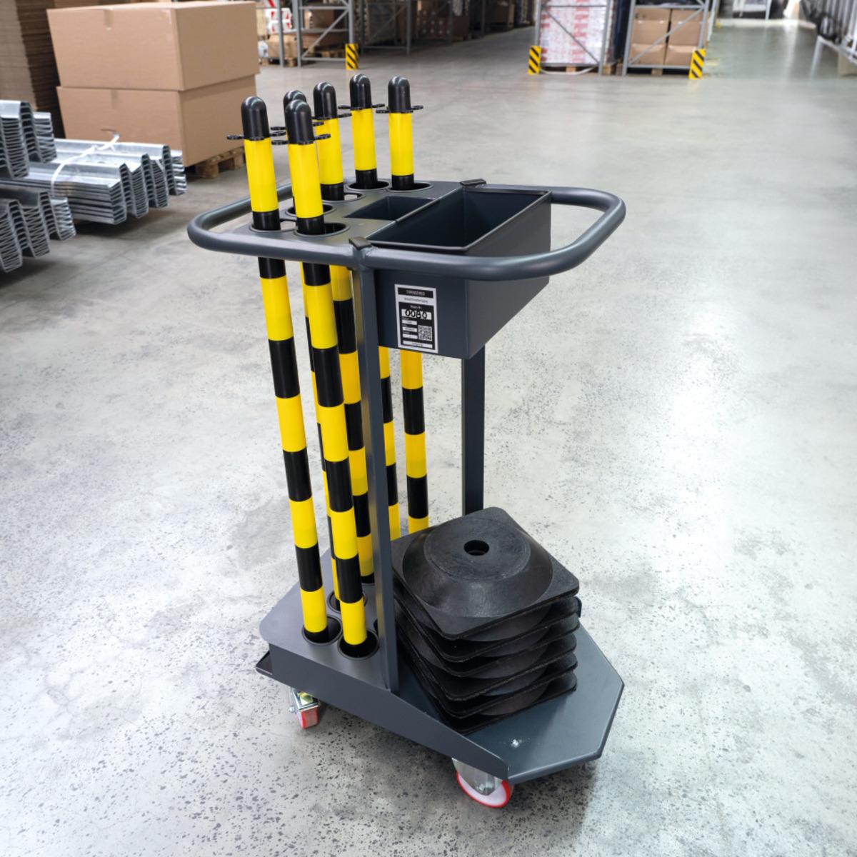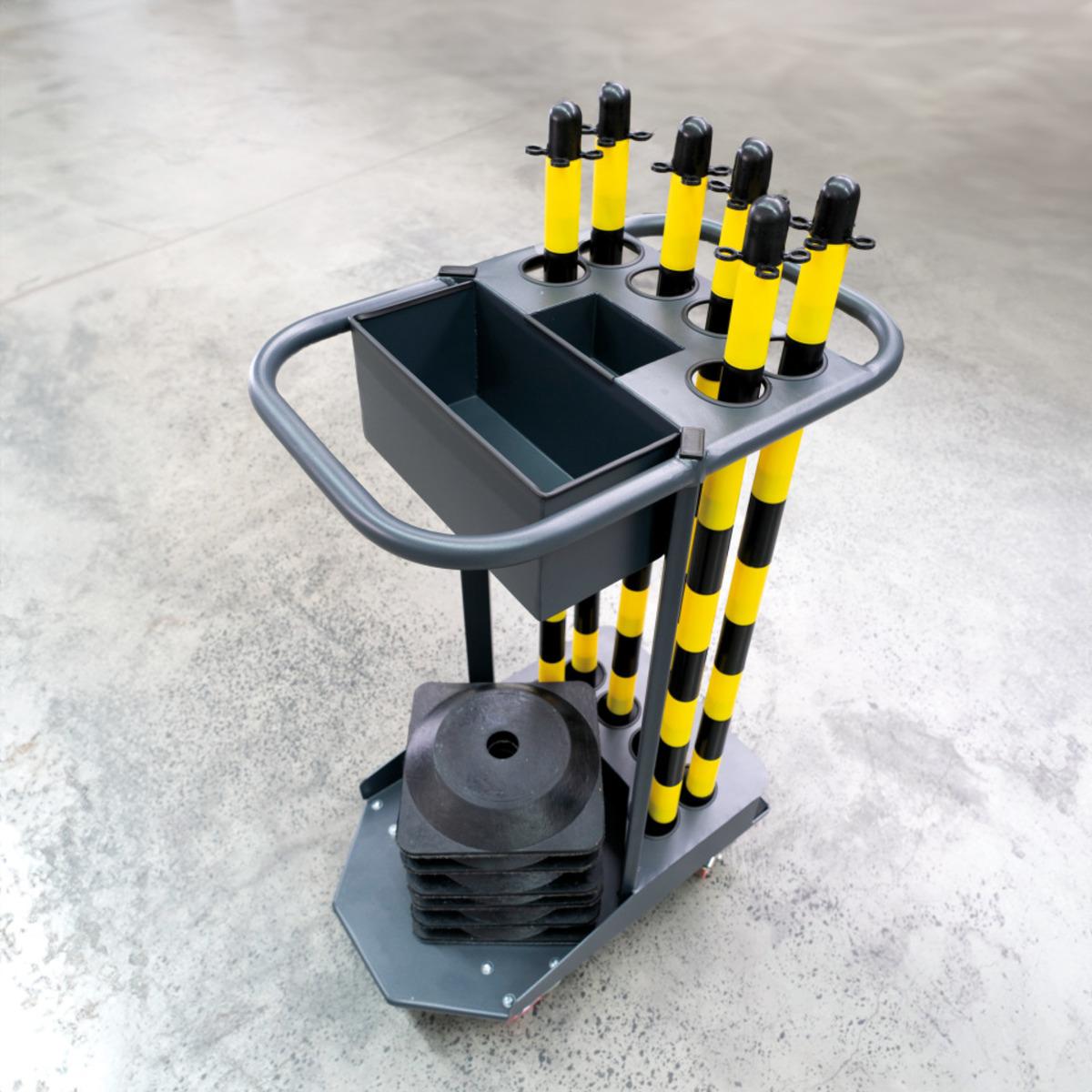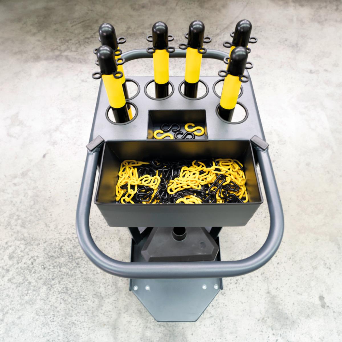 K.57 Transportwagen-Set mit Maxi und Recyclingfuß beinhaltet Kettenpfosten-Wagen Caddie, K.57 Einzelkettenständer Intern Maxi und K.57 Standfuß für Kettenständer Mobil.