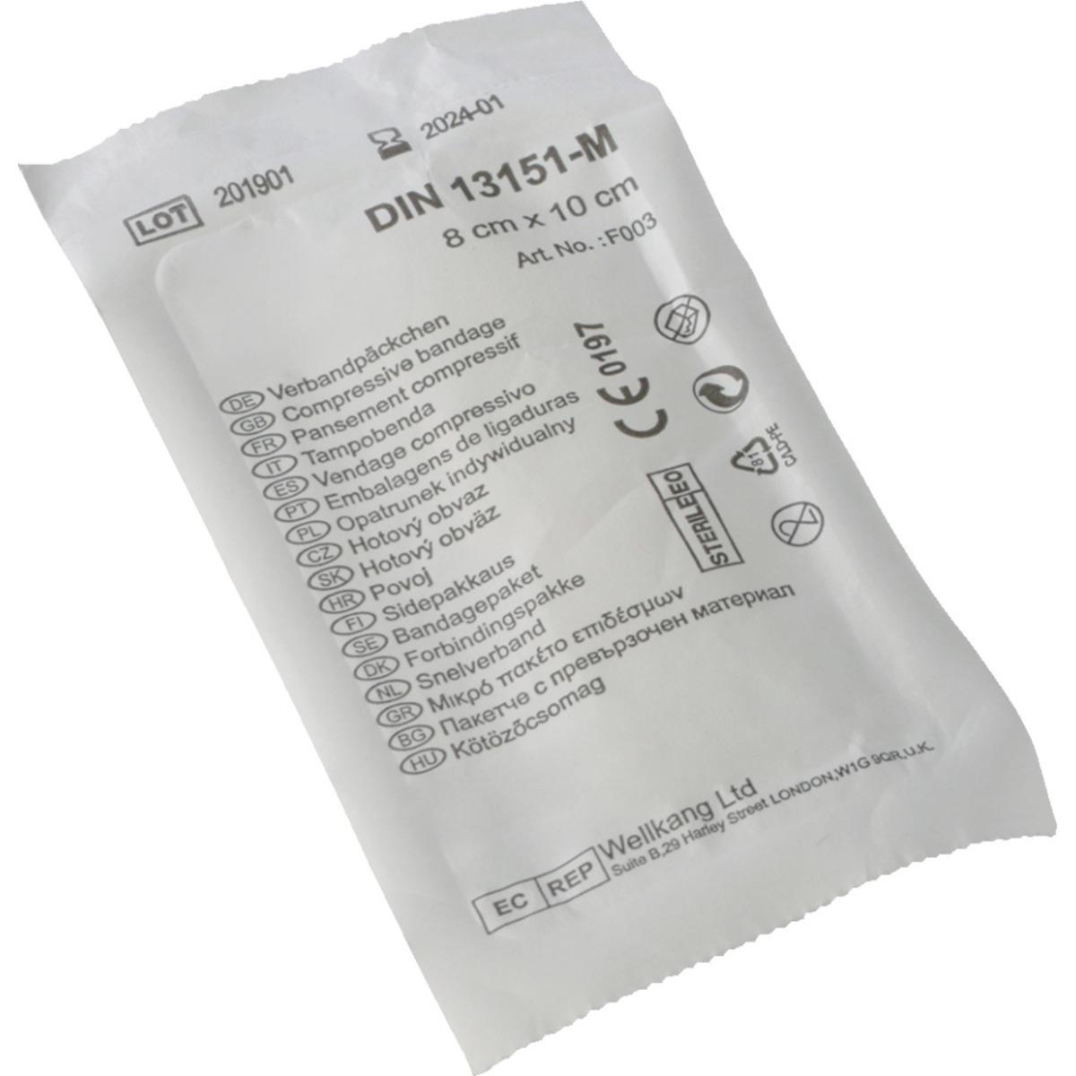 Verbandpäckchen in verschiedenen Größen zum Stillen von Blutungen oder dem Schutz von oberflächlichen Wunden, Verletzungen, Brandwunden, Schürfwunden, Riss- und Schnittverletzungen vor Verunreingungen.