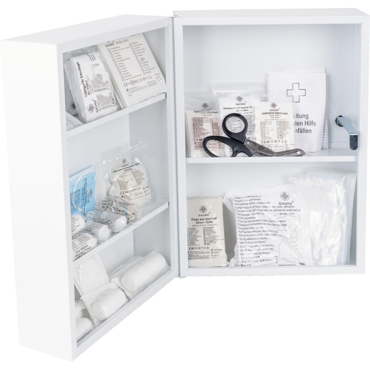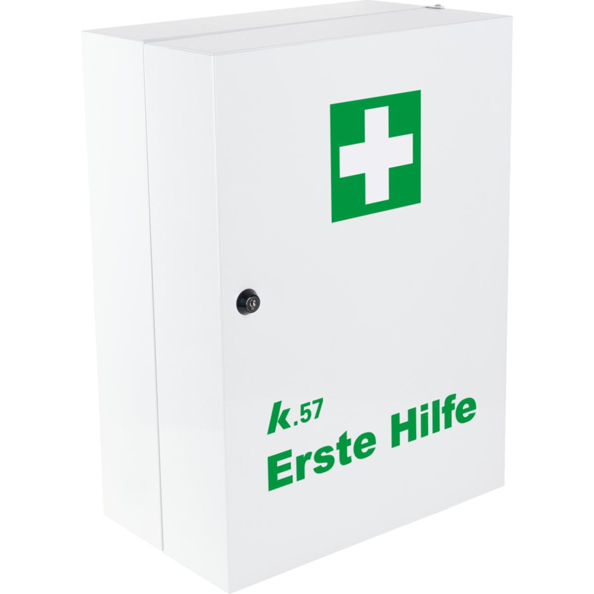 Auswahl: K.57 Verbandschrank, 1-türig, 3 Einlegeböden, weiß, Stahlblech, 320x450x190mm
