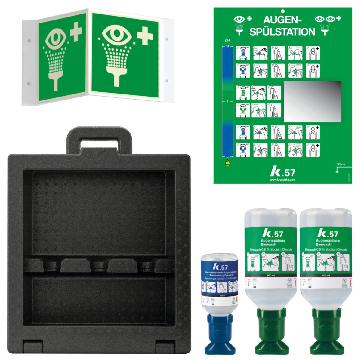 Auswahl: K.57 Vorteils-Set Augenspülung iBox 3, Wandbox, Augenspülungen, Schild, Anleitung.