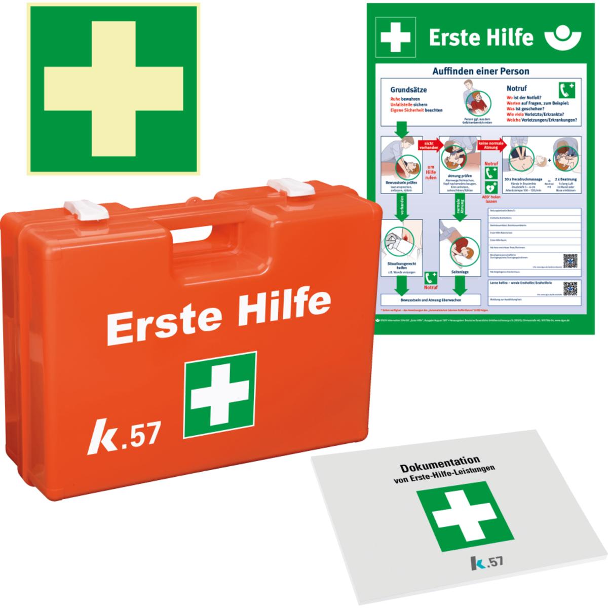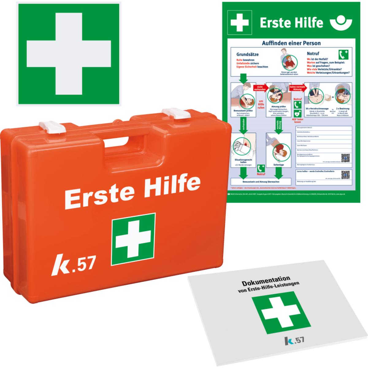 Auswahl: K.57 Vorteils-Set Erste-Hilfe-Koffer Pro, Rettungszeichen, Verbandblock, Aushang