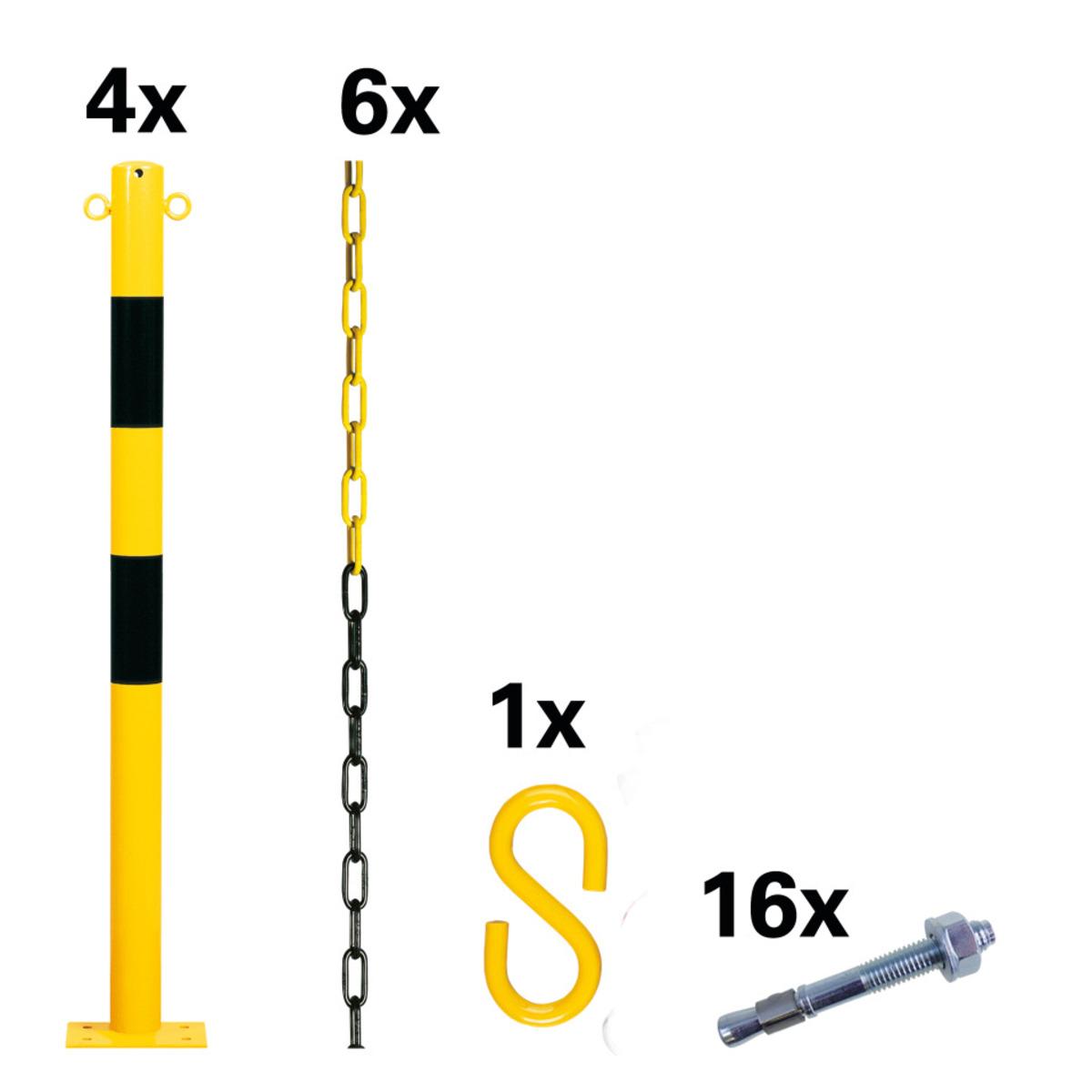 Auswahl: K.57 Vorteils-Set Schutzpfosten XL Quattro, Pfosten XL, Absperrkette, S-Haken/Anker