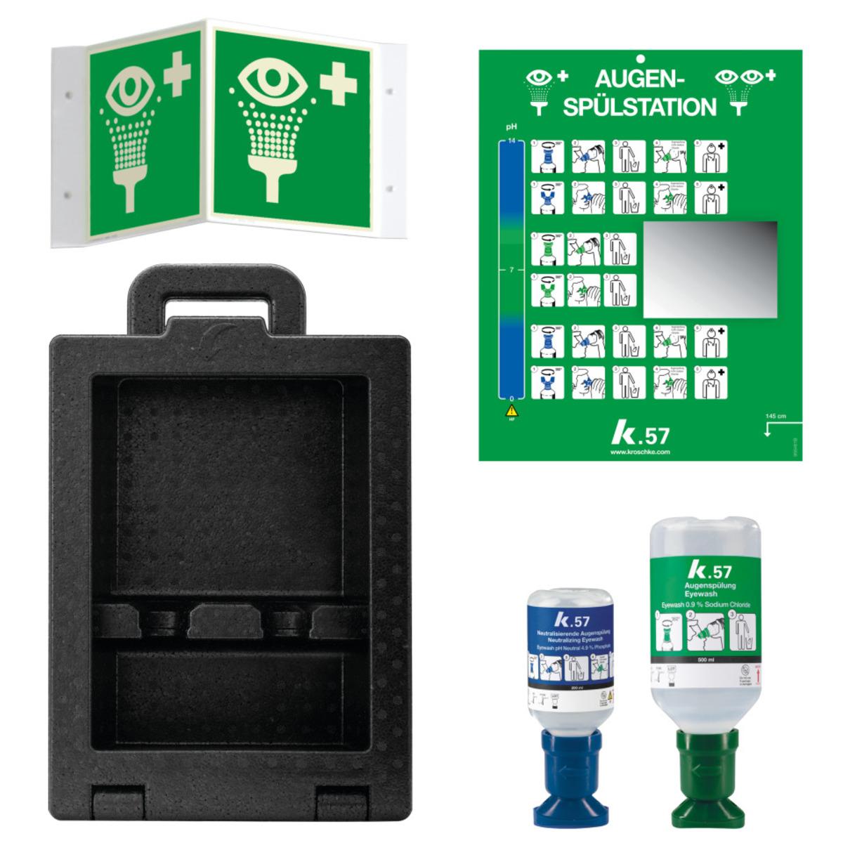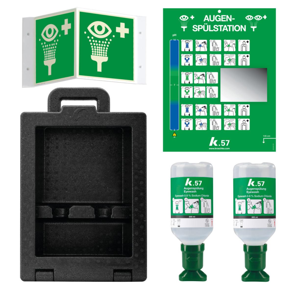 Auswahl: K.57 Vorteils-Set Wandbox Augenspülung iBox 2, Augenspülungen, Schild, Anleitung.
