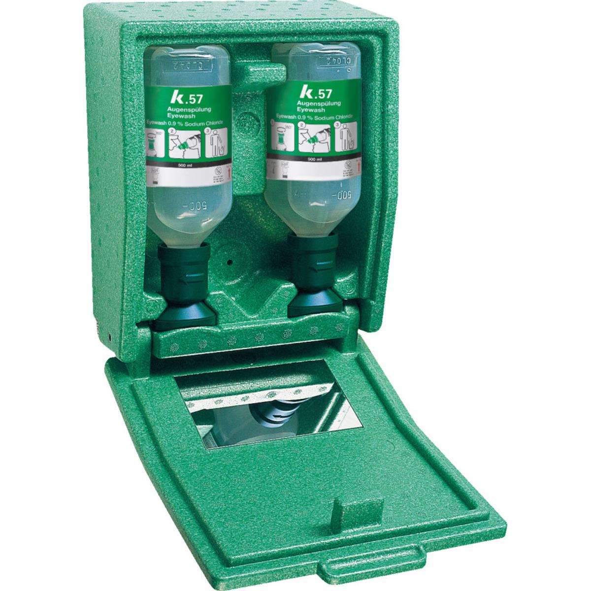 Auswahl: K.57 Wandbox Augenspülung, gefüllt mit zwei 500ml/Flaschen gemäß DIN EN 15154-4
