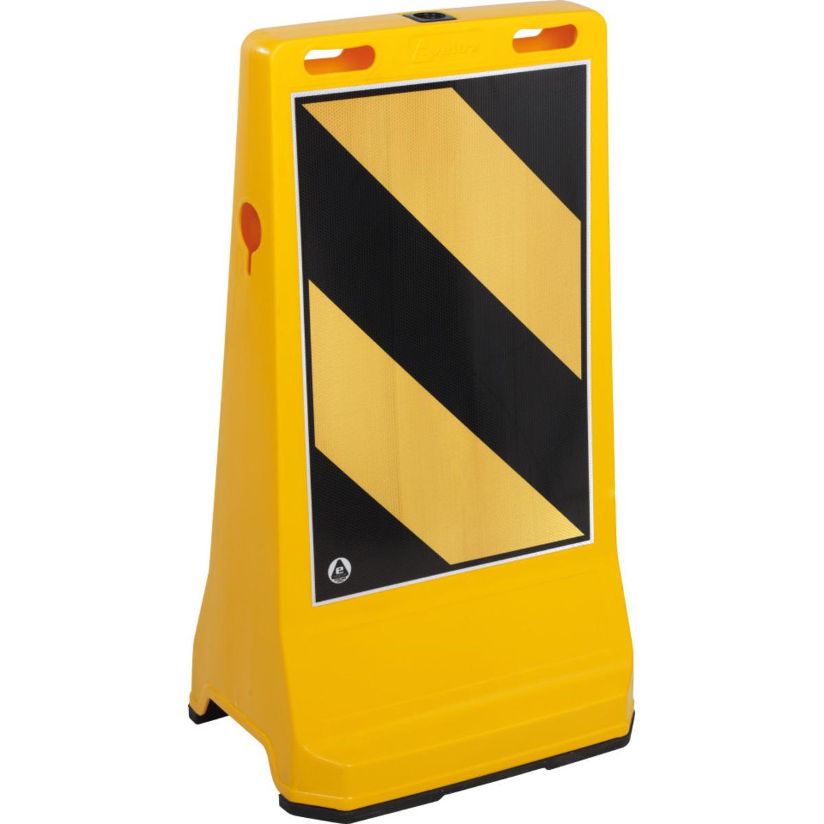Der Warnaufsteller Solid ist standfest, unübersehbar und robust, mit rutschfestem gummiertem Fuß, einsetzbar im Innen- und Außenbereich, übereinander stapelbar zur platzsparenden Lagerung und einfach zu transportieren durch integrierte Griffe.