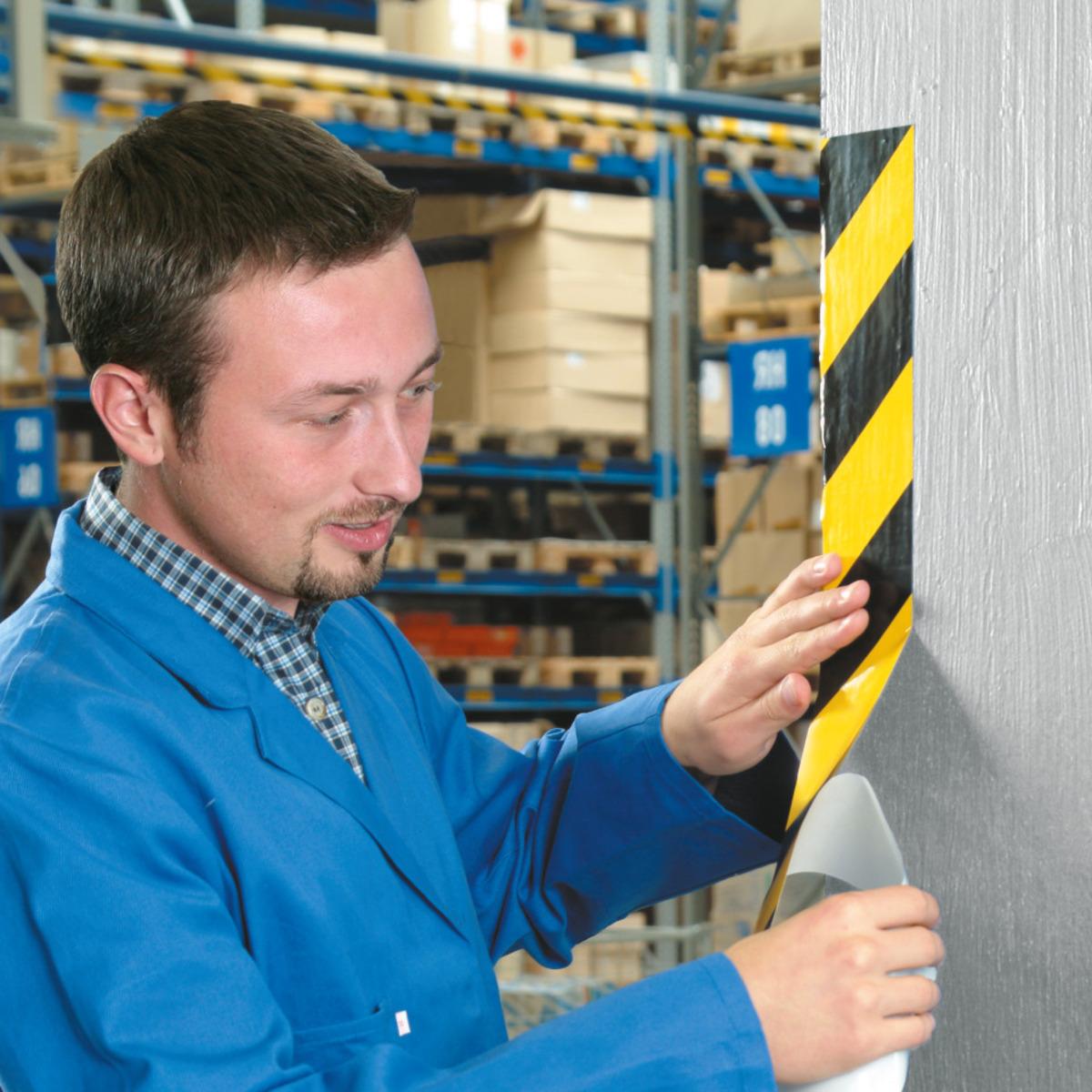 Auswahl: K.57 Warnmarkierungsband, linksw., ASR A1.3, gelb/schwarz, Folie, selbstkl., 60mm, 66m
