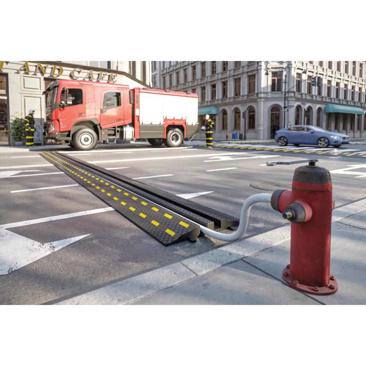 Kabelschutz-Brücke Maxi für das Verstecken bzw. für den vorübergehenden Schutz von elektrischen Leitungen, Kabeln und Feuerlöschschläuchen auf Straßen, Bühnen. Unempfindlich auf hohe Belastungen.