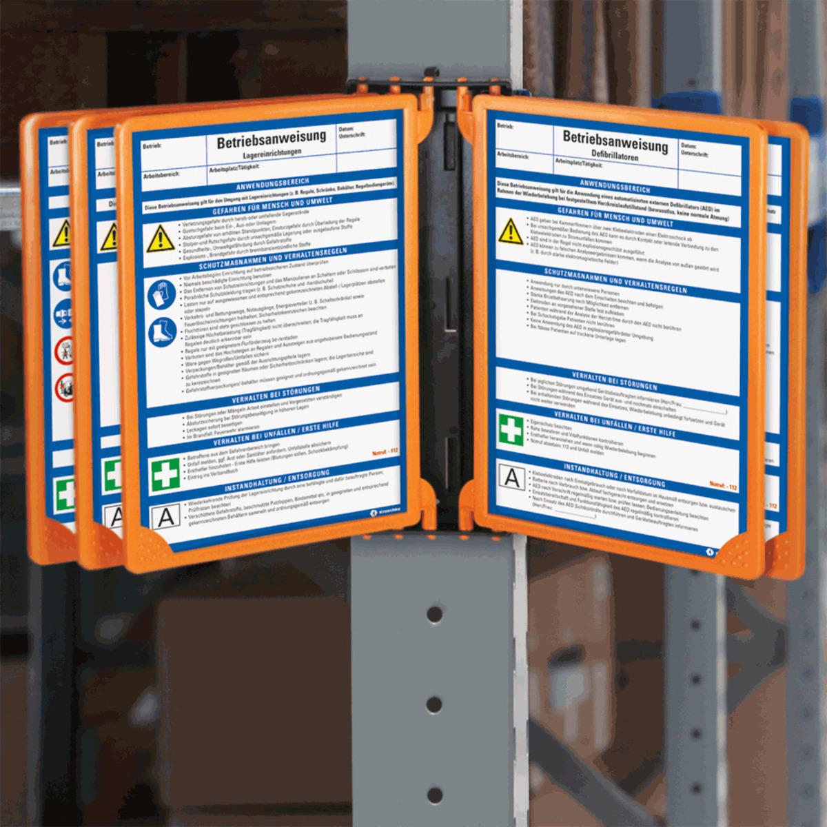 Auswahl: Klapprahmen INFOLINE, Magnethalter mit 5 Rahmen, orange, Kunststoff, DIN A4