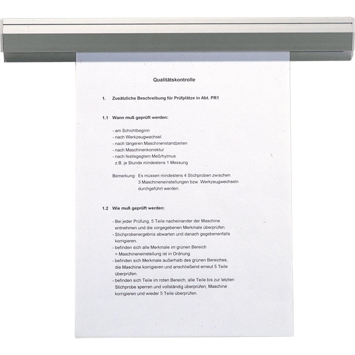 Klemmschiene zum Aushängen von Informationen, Aushängen, Flipcharts etc., Blatt wird von unten eingeschoben und lässt sich seitlich wieder herausziehen, für den schnellen Wechsel der Motive, inklusive Wandbefestigungsmaterial