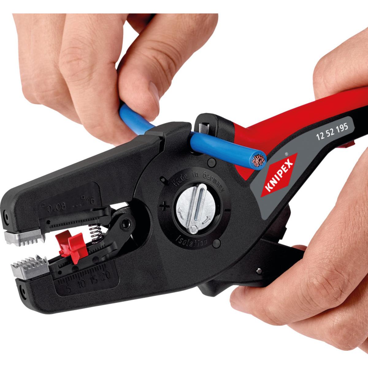 KNIPEX® Abisolierzange mit Automatik zur Regelung der Einschneidetiefe der Abisoliermesser.