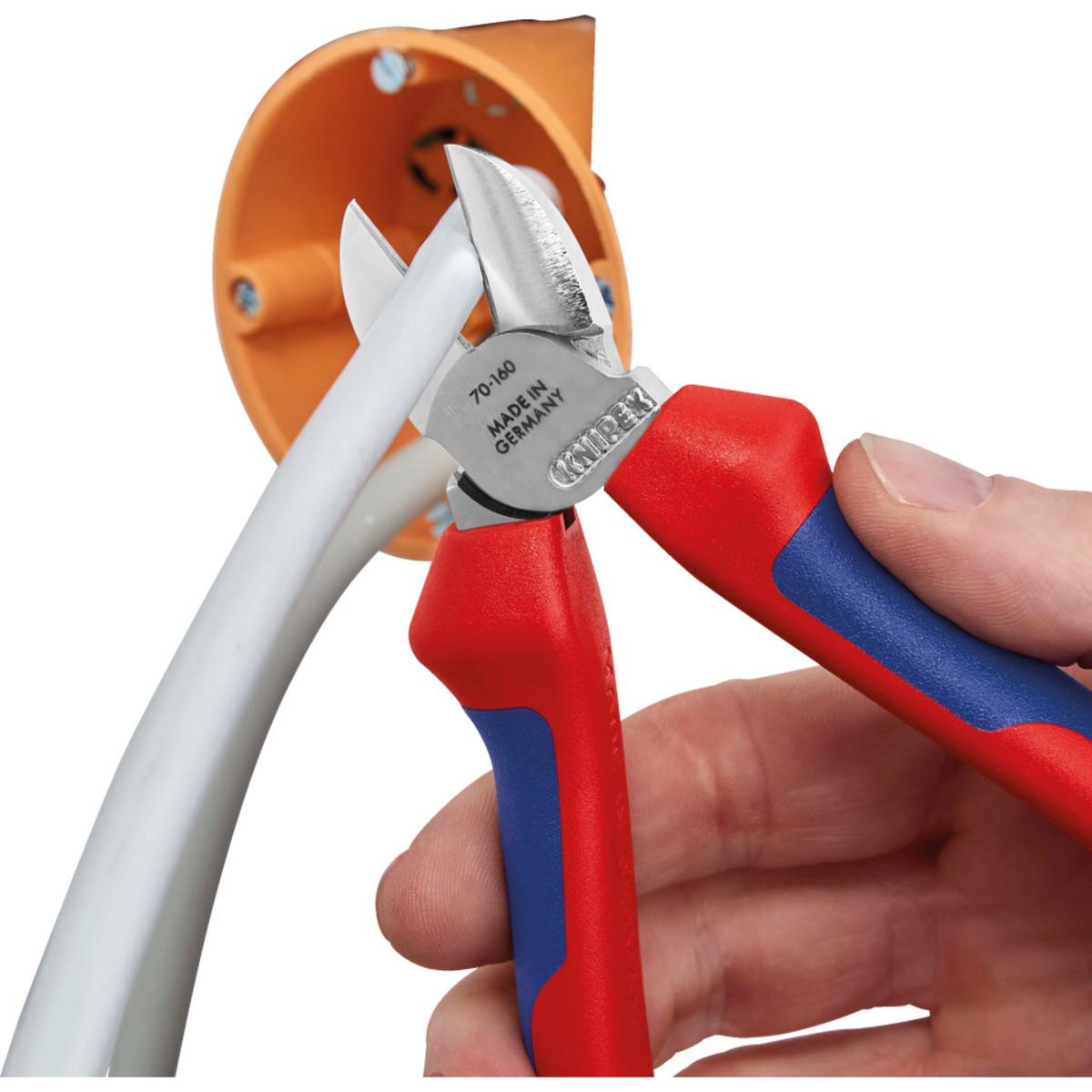 KNIPEX® Seitenschneider mit schlanker Kopfform für den Einsatz in schwer zugänglichen Arbeitsbereichen.