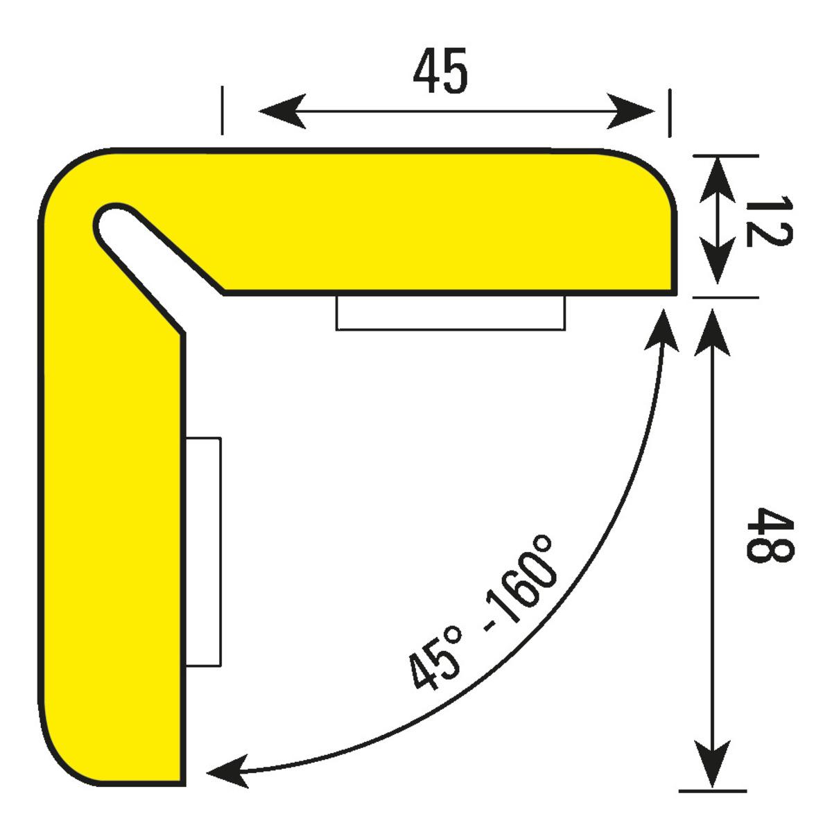 Die Knuffi® Eckschutzprofile warnen vor Gefahren, verhindern Stoßverletzungen und sind blitzschnell montiert. Die Schutzprofile Flex sind ideal um auch nicht rechtwinklige Kanten zu schützen. Sie passen sich flexibel Winkelgrößen zwischen 45° und 160° an. Sie sind geeignet für stationäre Hindernisse für den Innen- und Außeneinsatz. Sie sind hoch flexibel und alterungsbeständig und mit dem Teppichmesser zuschneidbar.