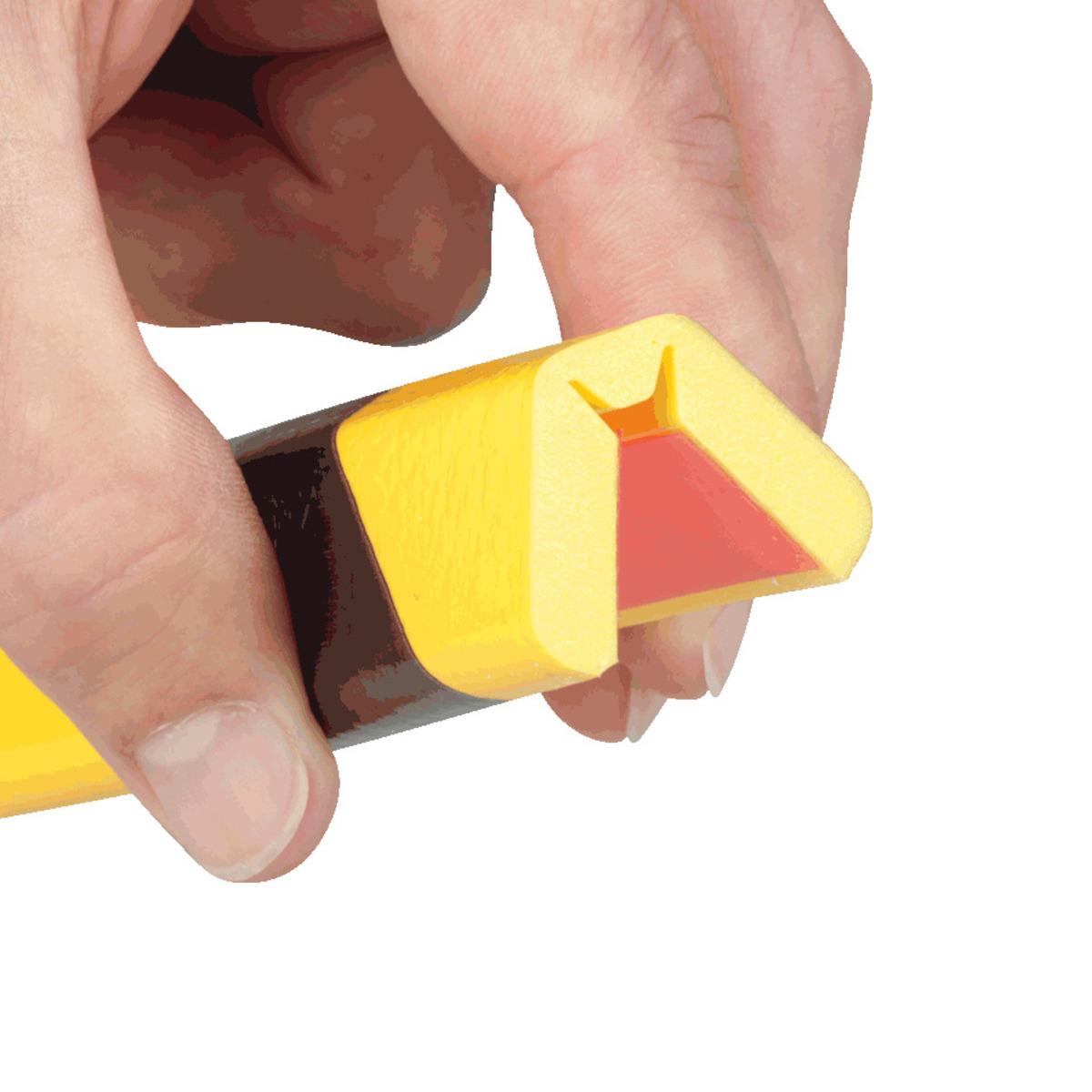 Die Knuffi® Eckschutzprofile warnen vor Gefahren, verhindern Stoßverletzungen und sind blitzschnell montiert. Die Schutzprofile Flex sind ideal um auch nicht rechtwinklige Kanten zu schützen. Sie passen sich flexibel Winkelgrößen zwischen 45° und 160° an. Sie sind geeignet für stationäre Hindernisse für den Innen- und Außeneinsatz. Sie sind hoch flexibel und alterungsbeständig und mit dem Teppichmesser zuschneidbar.