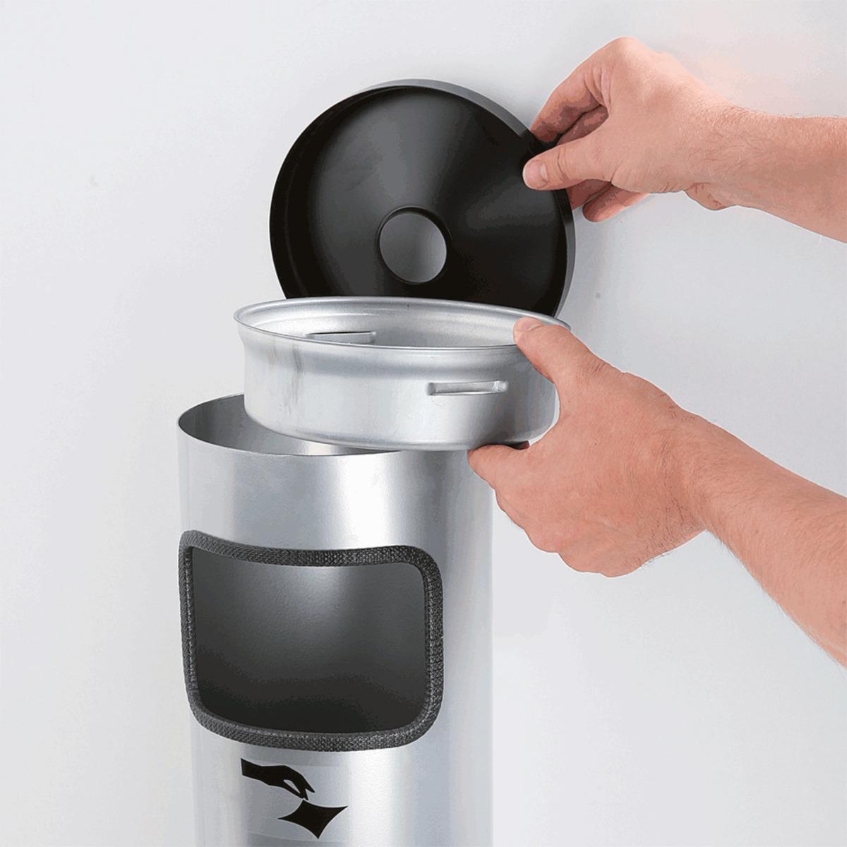 Auswahl: Abfall-/Ascher-Kombination, zur Wandmontage, silber, Stahlblech, 10 l, 410mm