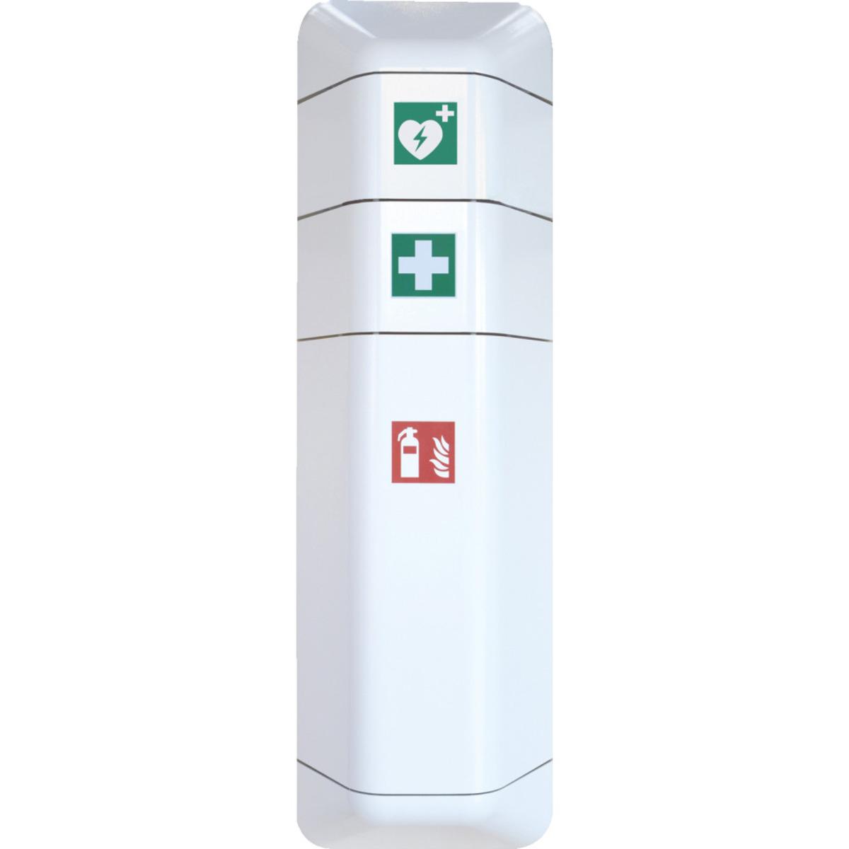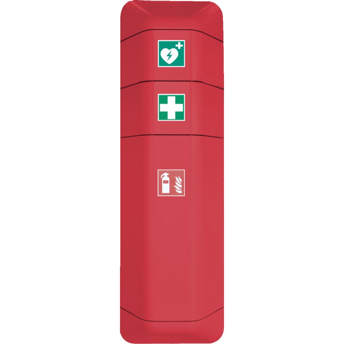 Schränke zur Aufbewahrung von Feuerlöschern, Verbandkästen und Defis.