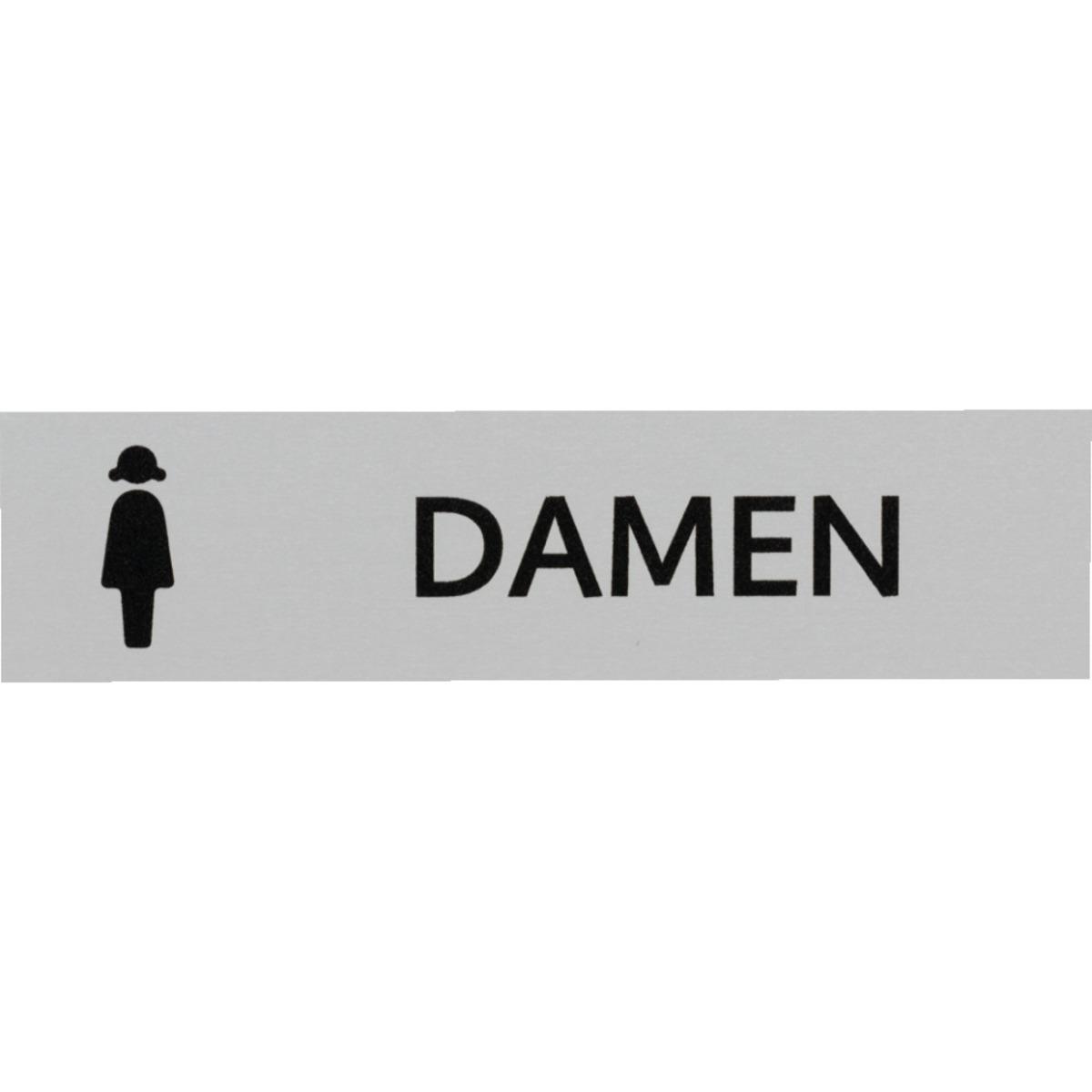 Auswahl: Kombi-Türschild Damen Toiletten, Pikto/Text, Aluminium, selbstklebend, 160x40mm