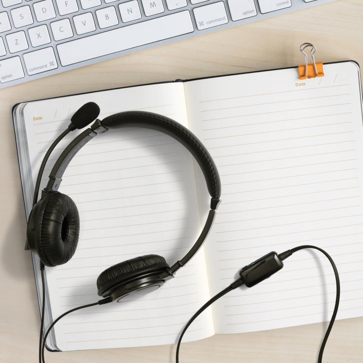 USB HiFi-Kopfhörer mit Mikrofon und Lautstärkeregler, hervorragender Stereosound, verstellbarer, gepolsterter Kopfbügel, weiche Schaumstoff-Ohrpolster mit Kunstlederbezug, Mikrofon mit Geräuschunterdrückung, Mikrofonstummschaltung, 1,8 m langes USB-Kabel