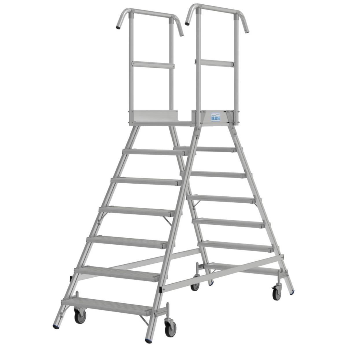 Auswahl: KRAUSE® Podestleiter, EN 131, beidseitig begehbar, fahrbar, 2x8 Stufen