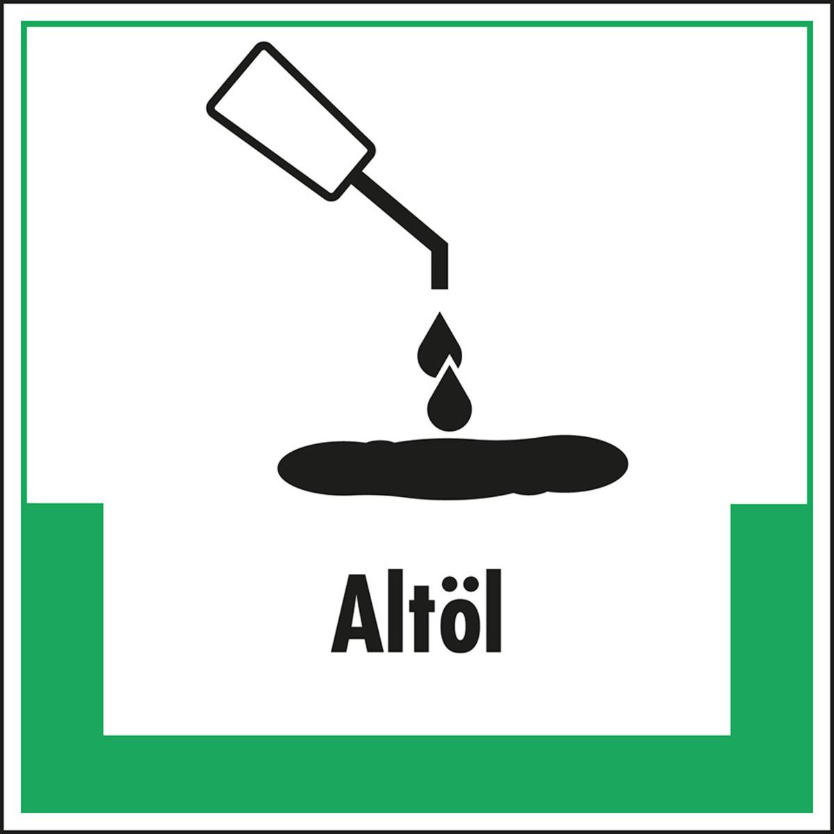 Auswahl: Abfallkennzeichen Altöl, mit Symbol und Text, Folie, selbstklebend, 200x200mm