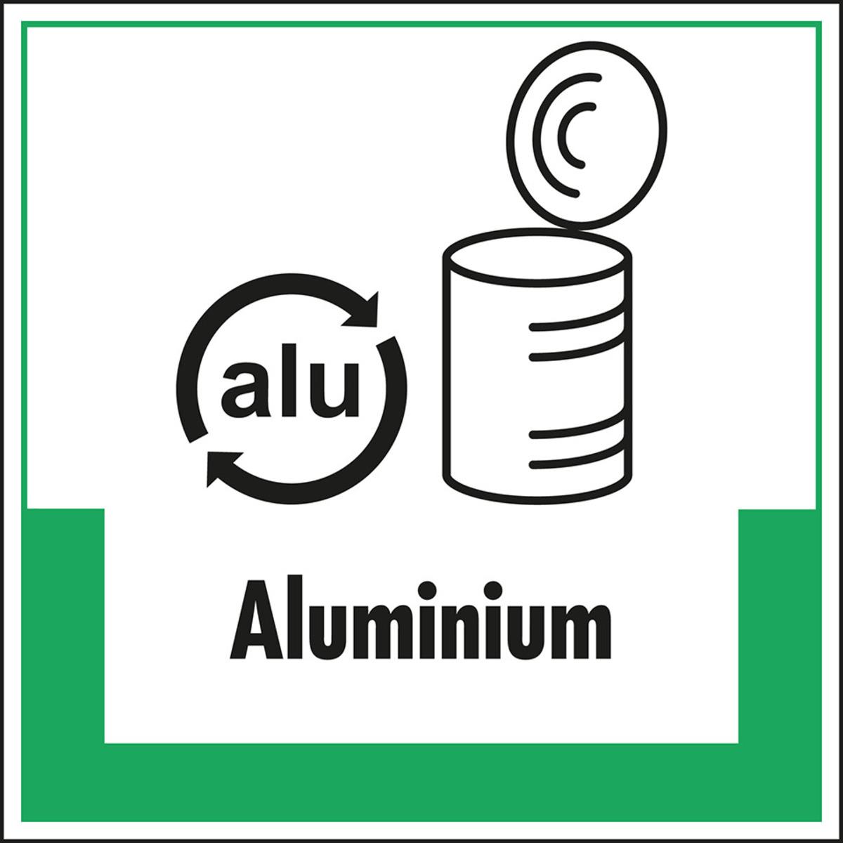 Auswahl: Abfallkennzeichen Aluminium, mit Symbol und Text, Folie, selbstklebend, 200x200mm