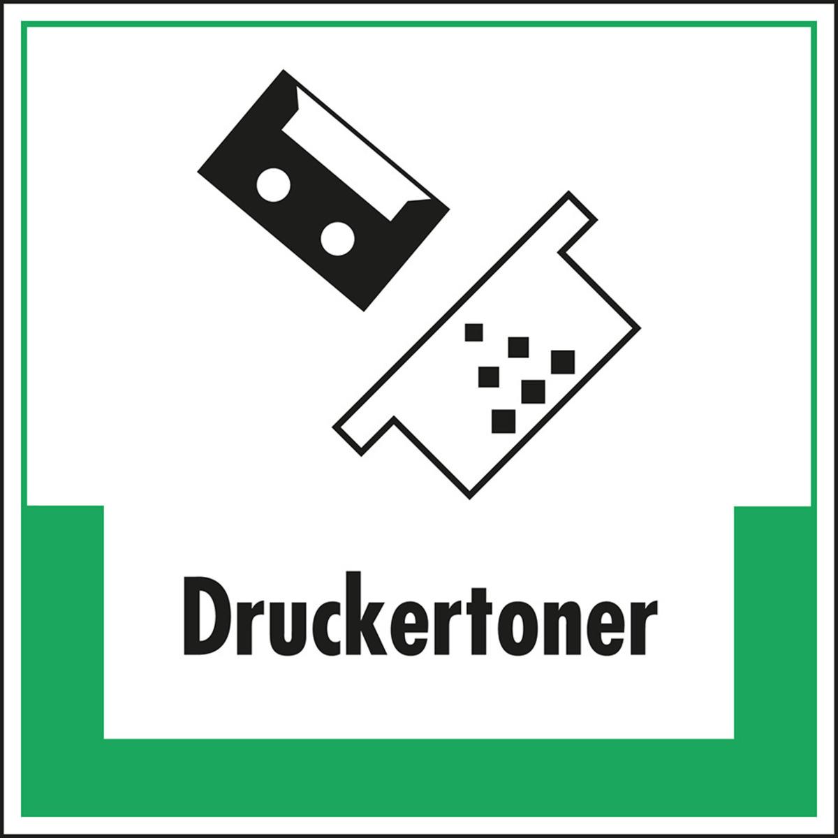 Auswahl: Abfallkennzeichen Druckert, mit Symbol und Text, Folie, selbstklebend, 200x200mm