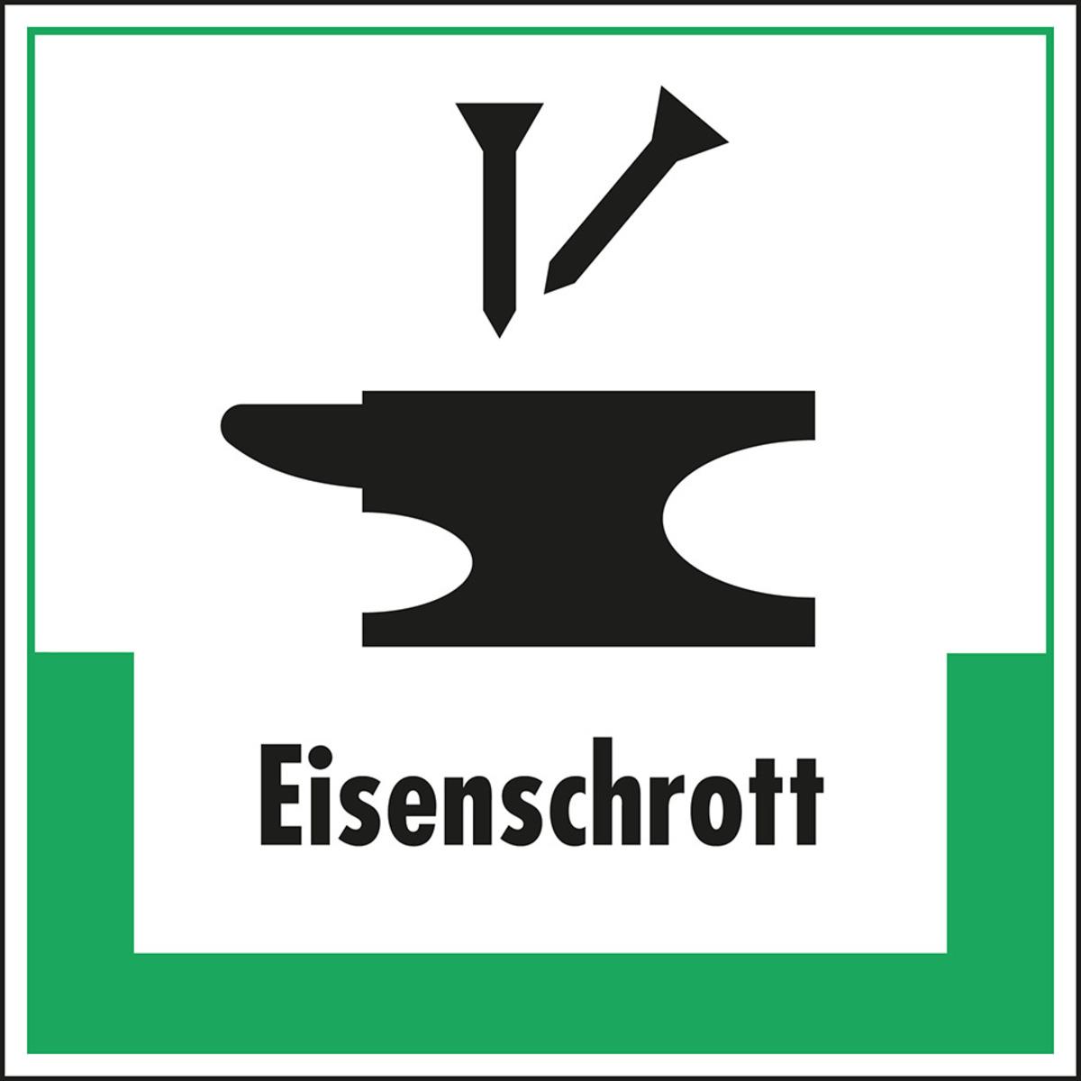 Auswahl: Abfallkennzeichen Eisenschrott, mit Symbol und Text, Kunststoff, 200x200mm