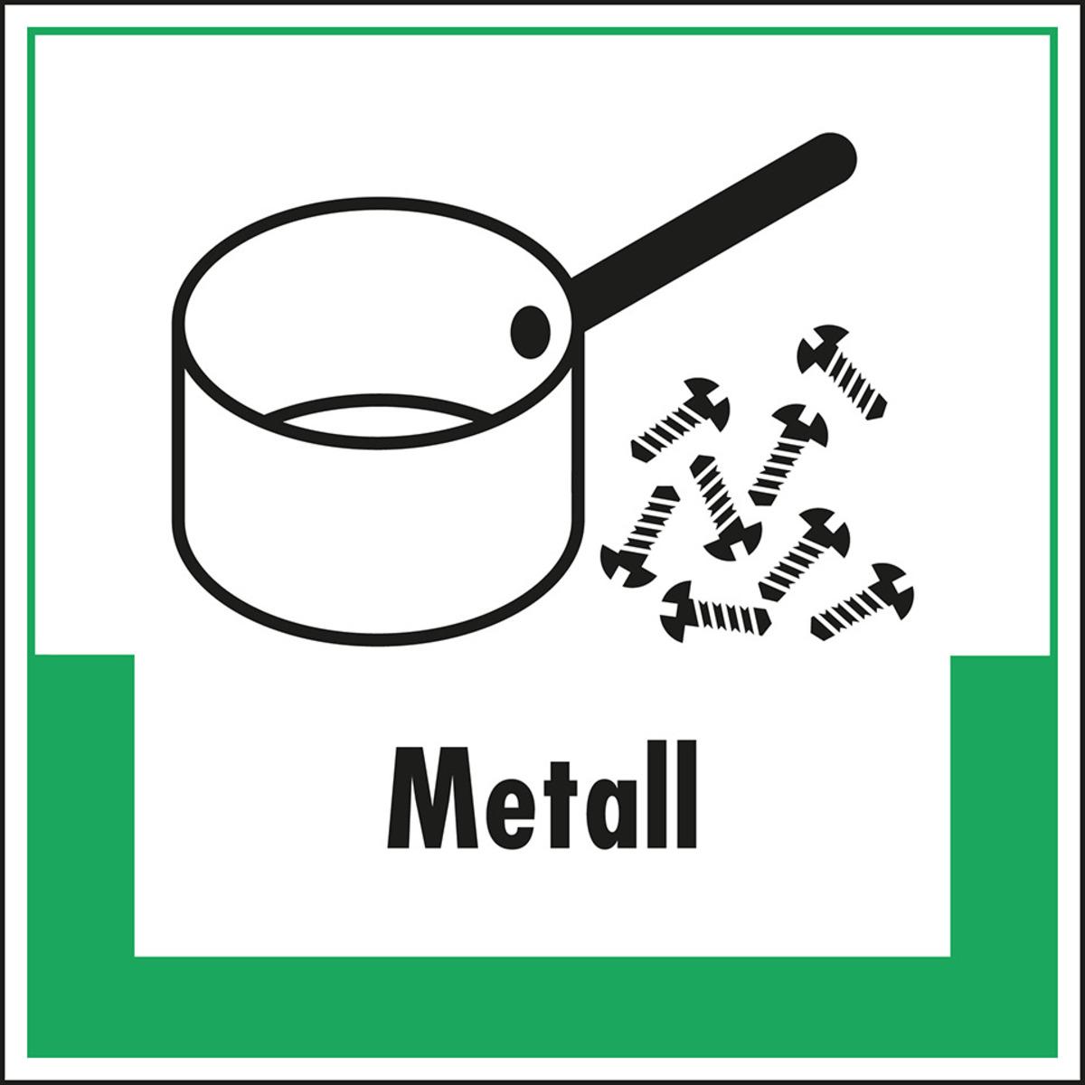 Auswahl: Abfallkennzeichen Metall, mit Symbol und Text, Folie, selbstklebend, 200x200mm