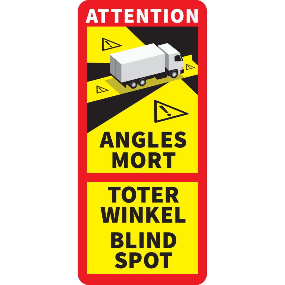 Auswahl: Aufkleber Achtung Toter Winkel-Angles Morts, franz., R.313/StVO, Folie, 250x170mm