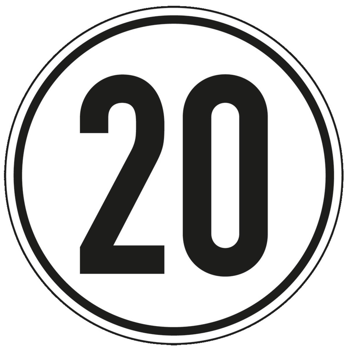 Auswahl: Geschwindigkeits-Schild 20 km/h, gemäß StVZO § 58, Folie, selbstklebend, Ø 200mm