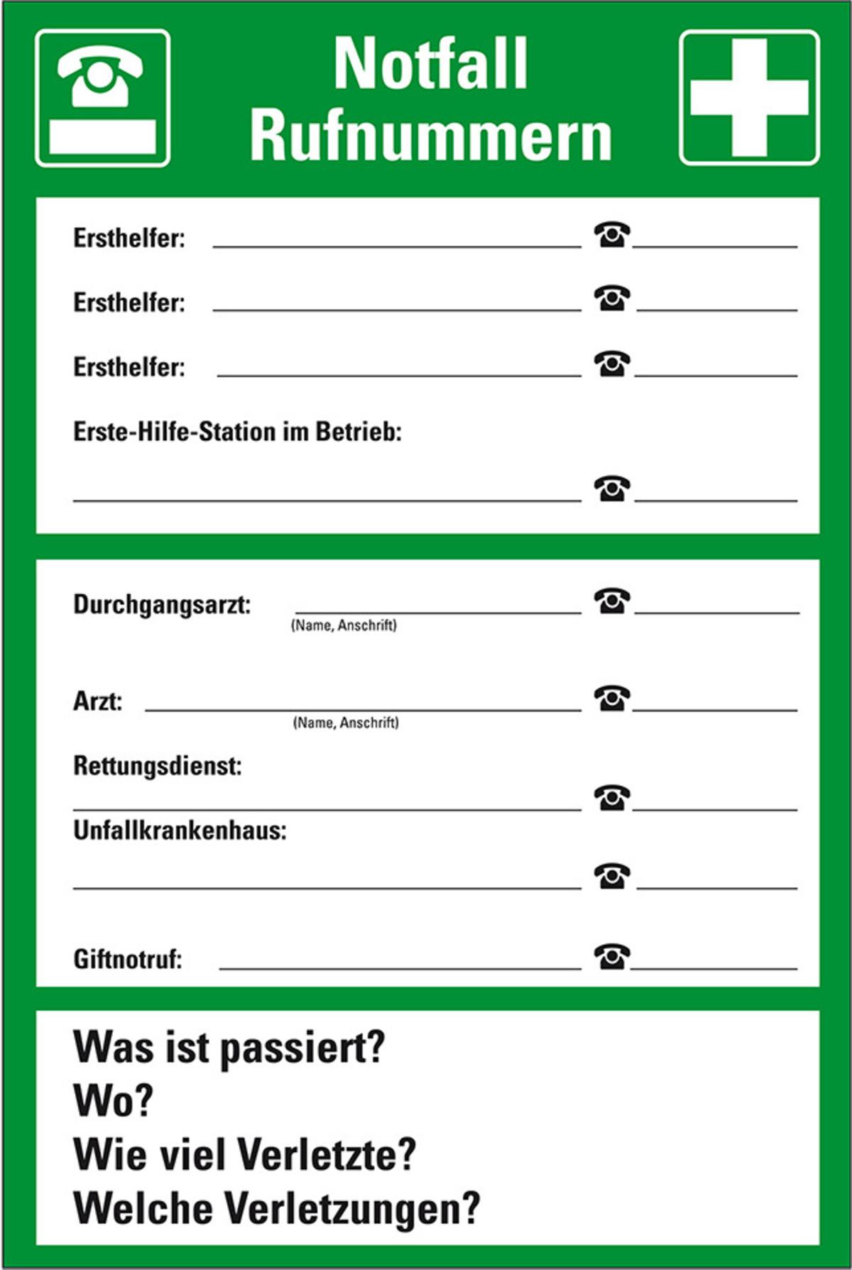 Auswahl: Aushang Notfall Rufnummern, Kunststoff, 200x300mm