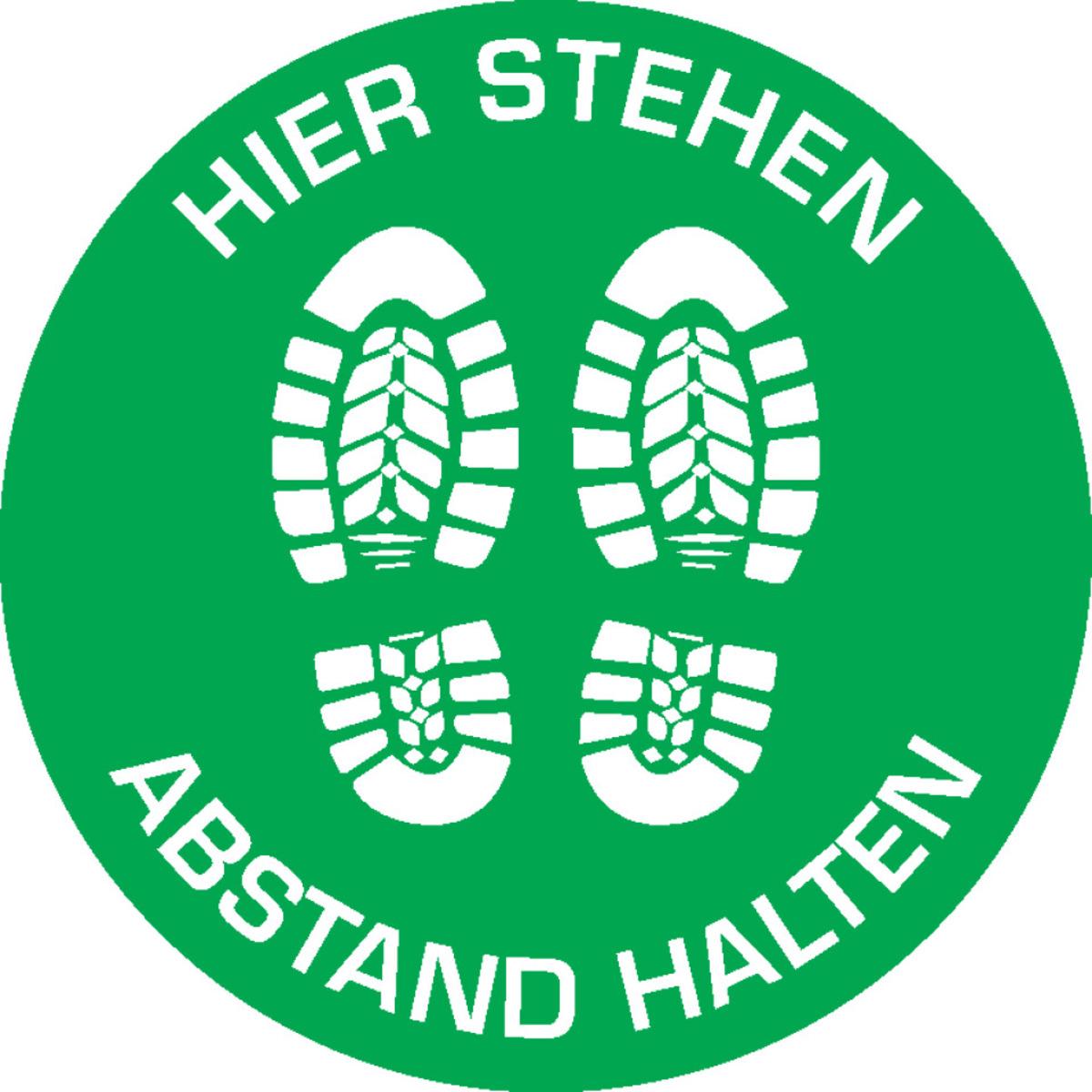 Auswahl: Bodenzeichen Hier stehen - Abstand halten, R10, Bodenmarkierungsfolie, Ø 400mm