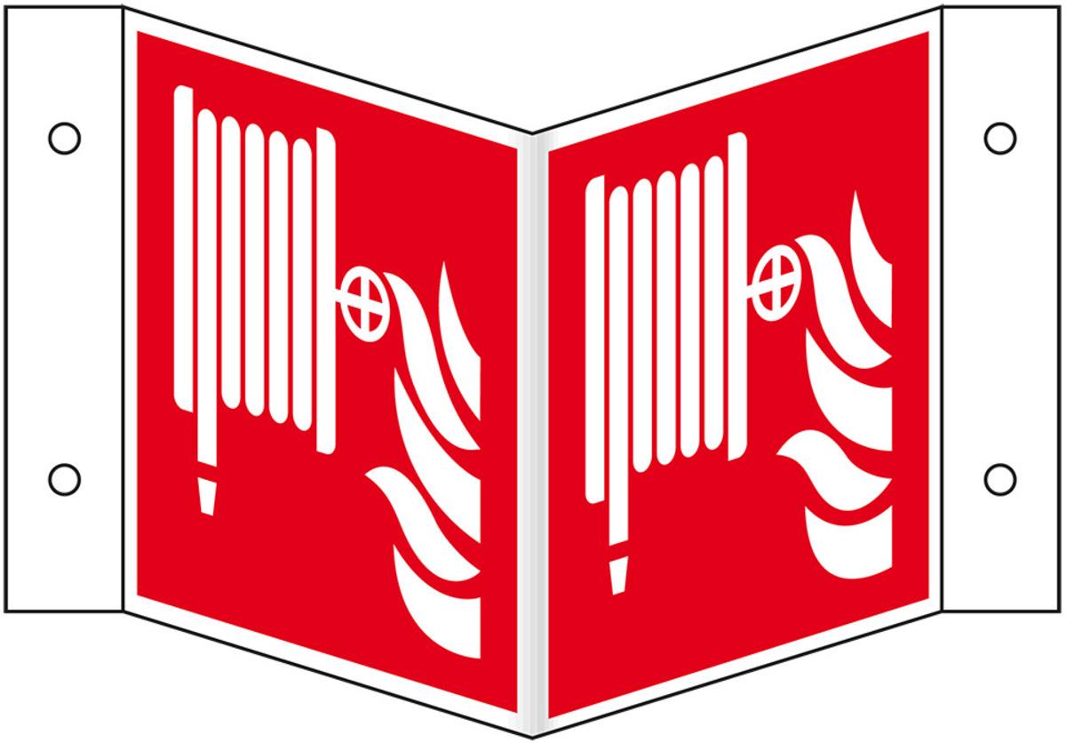 Das Brandschutzzeichen "Löschschlauch" kennzeichnet Sicherheitseinrichtungen und gibt Hinweise für schnelle Hilfe im Brandfall. Durch die Nasenform ist es auch aus der Entfernung besonders gut sichtbar.