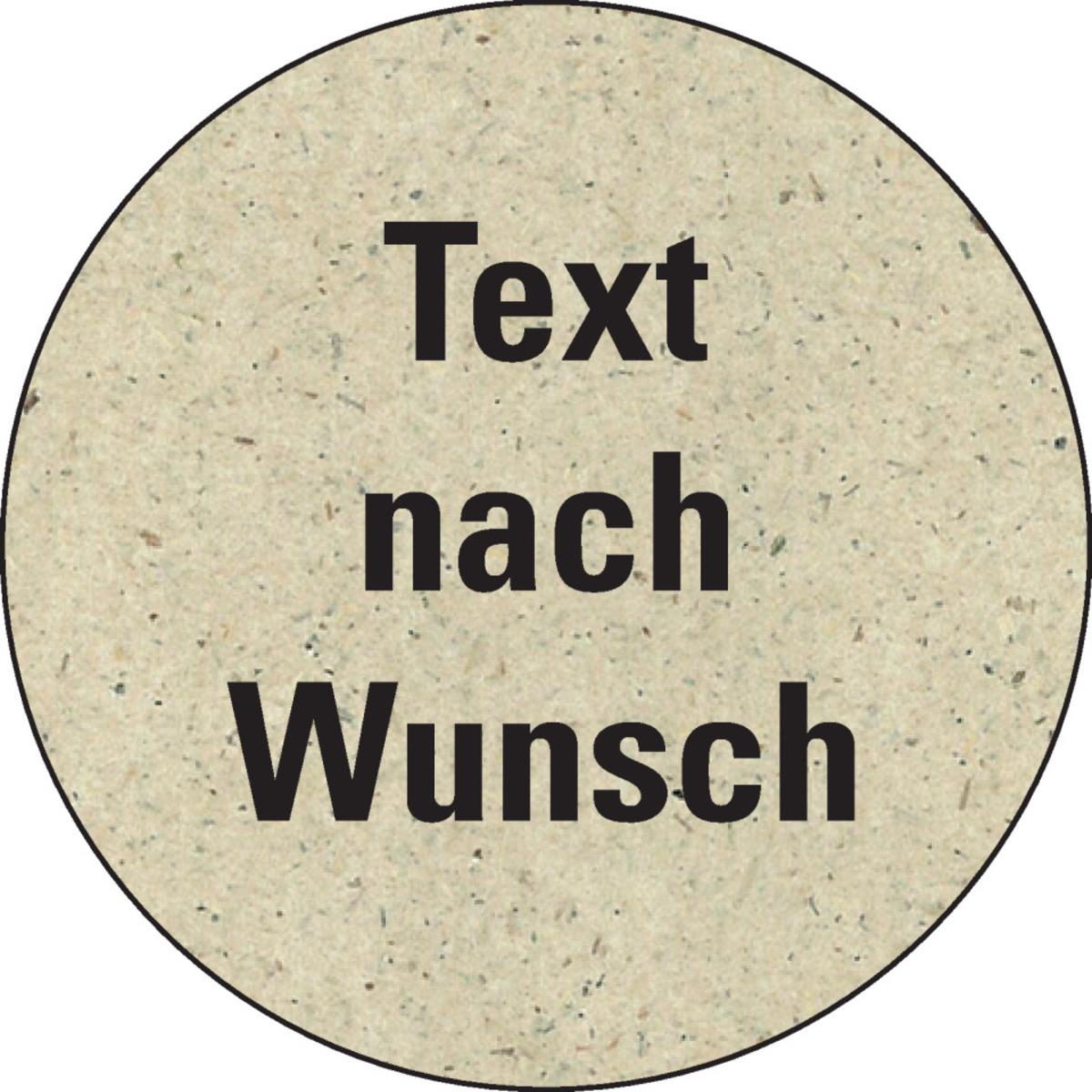Auswahl: Etikett Text nach Wunsch, rund, Primärfaser-Graspapier, Ø 30mm, 18/Bogen