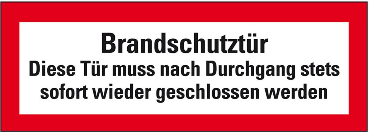 Auswahl: Feuerwehrschild Brandschutztür Diese Tür muss nach..., Folie, selbstkl., 210x74mm