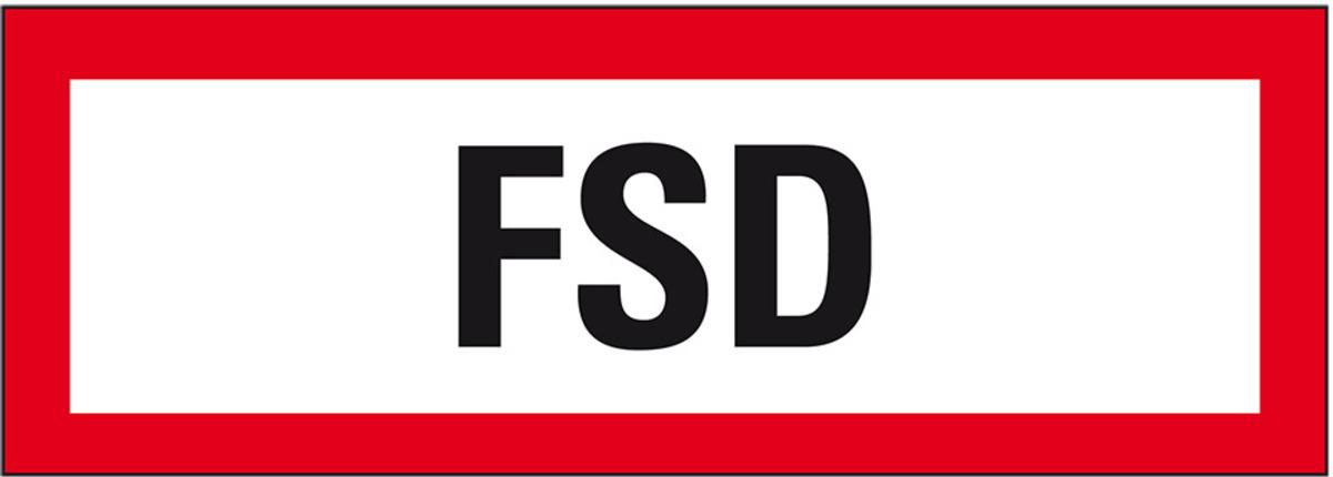 Das Feuerwehrschild "FSD" kennzeichnet wichtige Einrichtungen/Orientierungspunkte für die professionellen Einsatzkräfte im Brandfall.