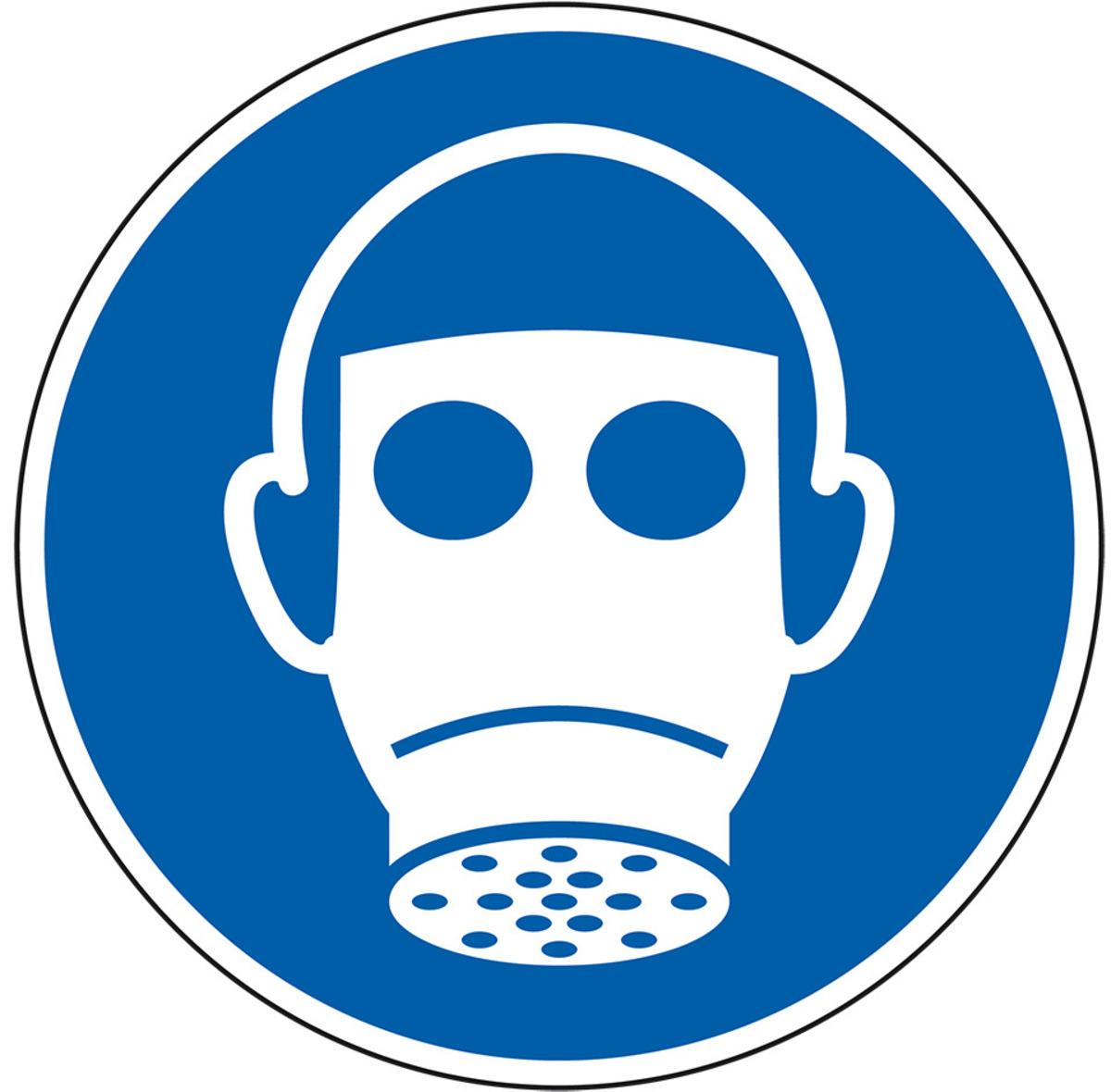 Mit dem Gebotszeichen "Atemschutz benutzen" weisen Sie auf Verhaltenmaßregeln hin, die für mehr Sicherheit zu beachten sind.