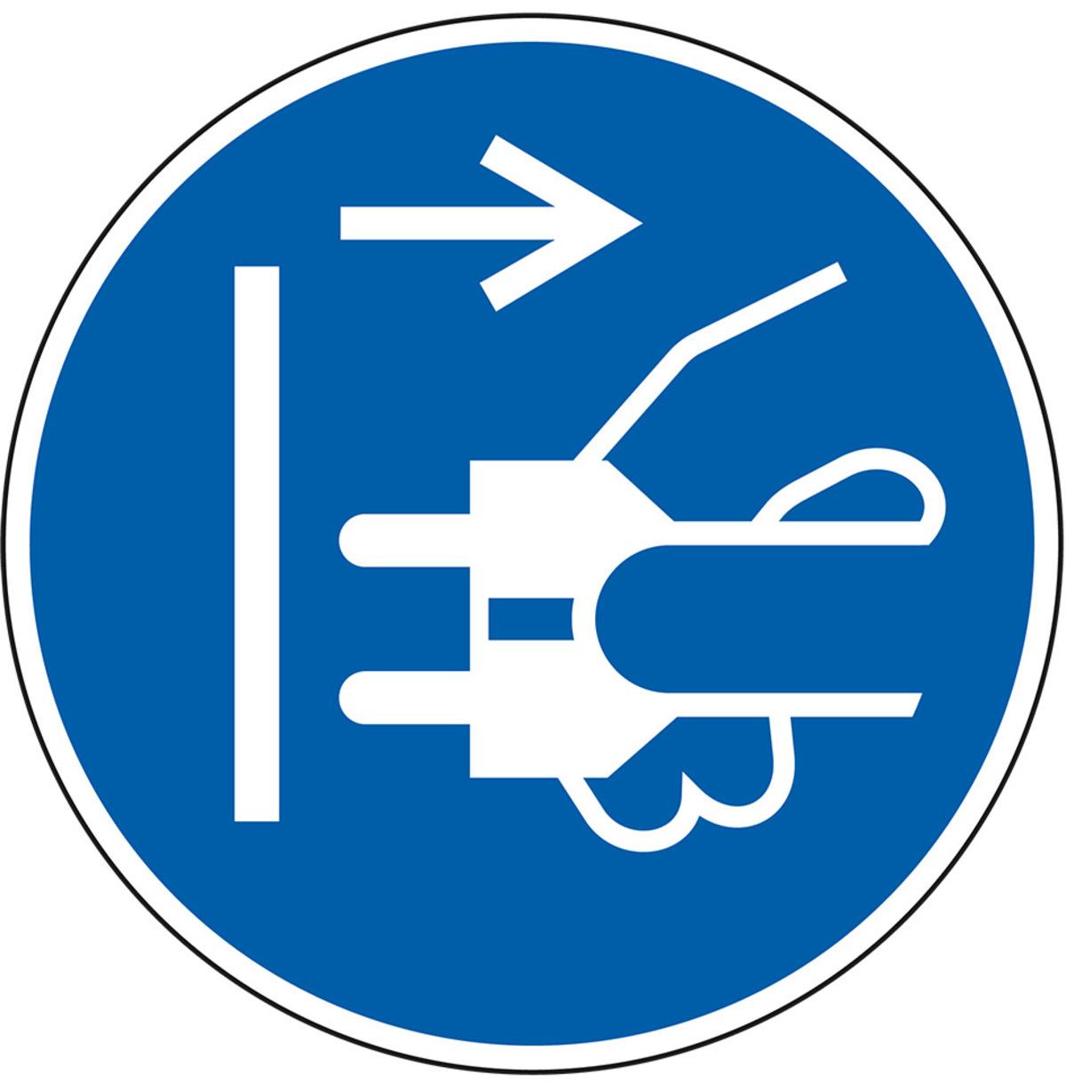 Mit dem Gebotszeichen "Netzstecker ziehen" weisen Sie auf Verhaltenmaßregeln hin, die für mehr Sicherheit zu beachten sind.